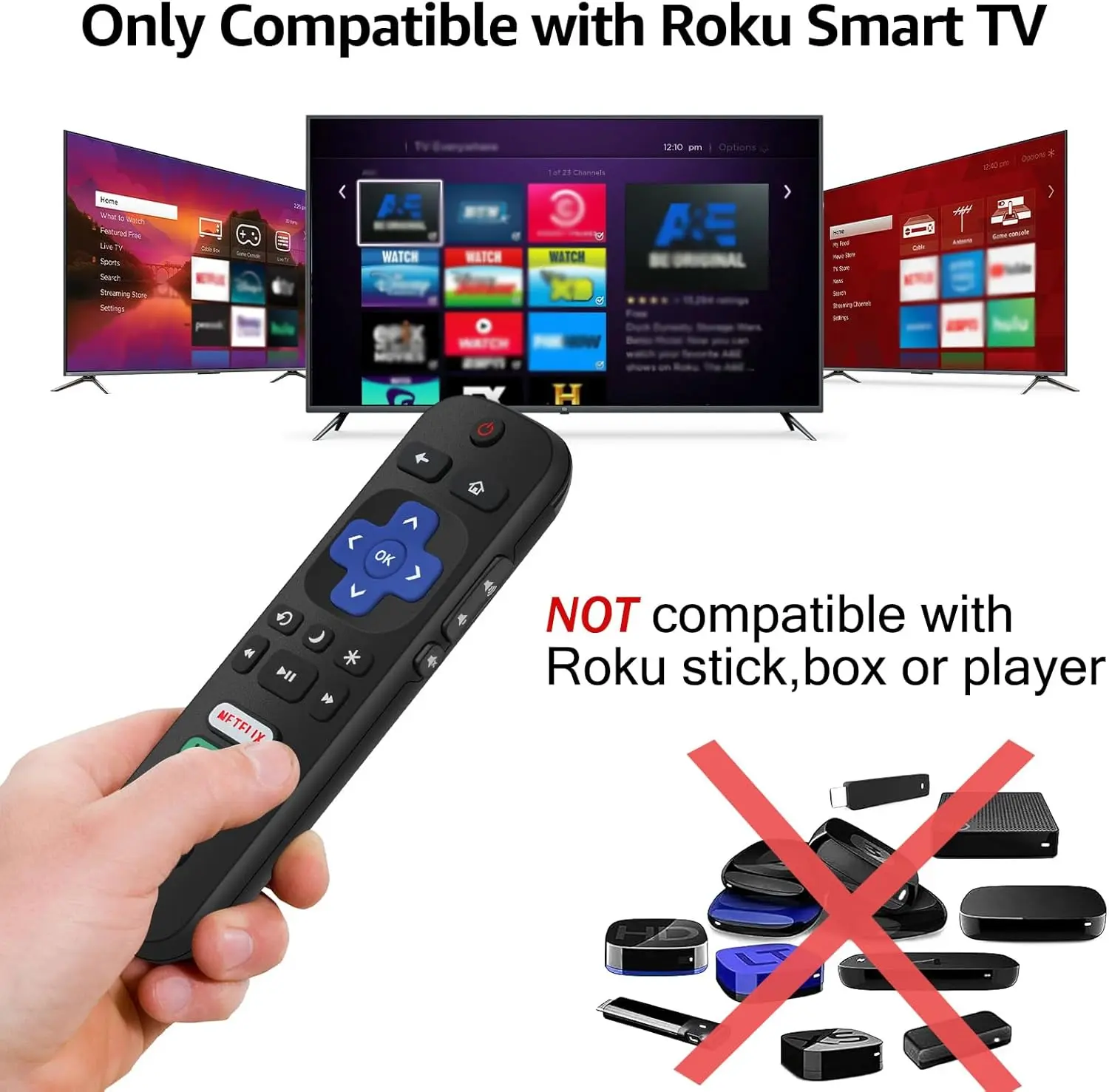 ·Not for: Roku Stick, Box, or Speaker.