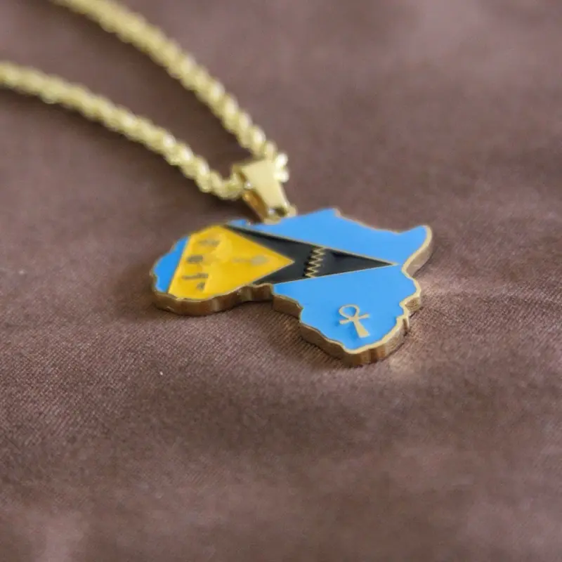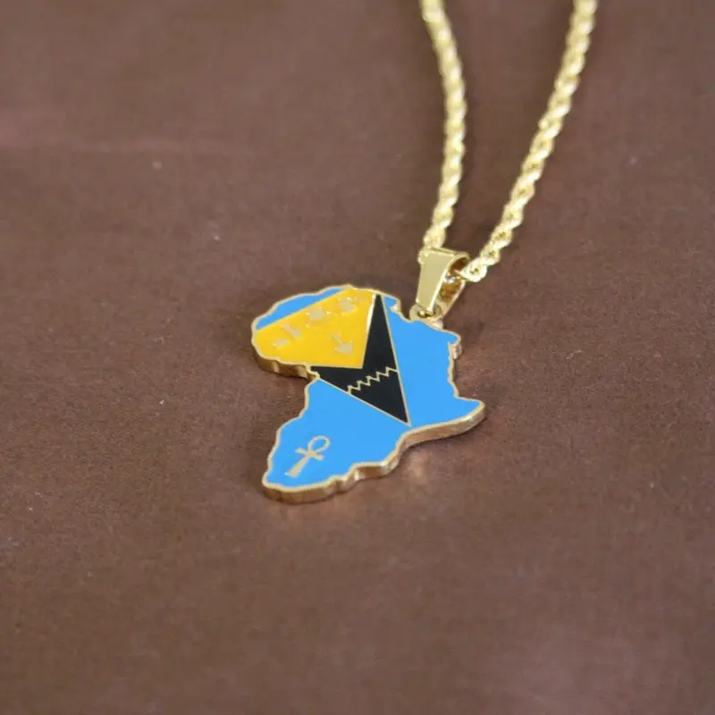 This unique pendant is a statement piece that combines style with cultural significance. Perfect for those who appreciate distinctive jewelry, it features an Afro- st Lucian design. The pendant is a versatile accessory that can elevate any outfit. Ideal for both casual and formal wear, it adds a touch of elegance to your ensemble.
