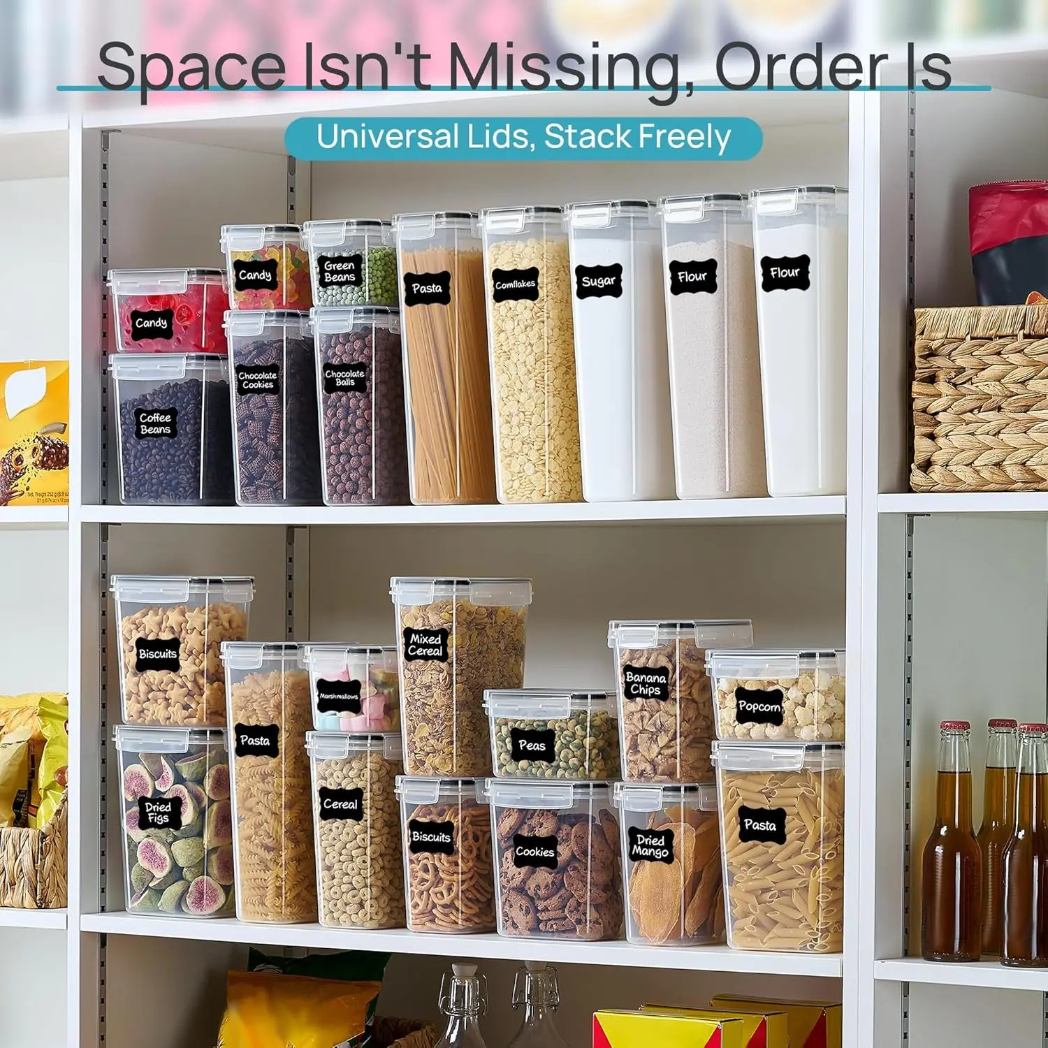 ---Sure, there are also specialized pasta containers and flour sugar containers that can be used together to help organize and store dry goods, snacks and other items in the kitchen and pantry