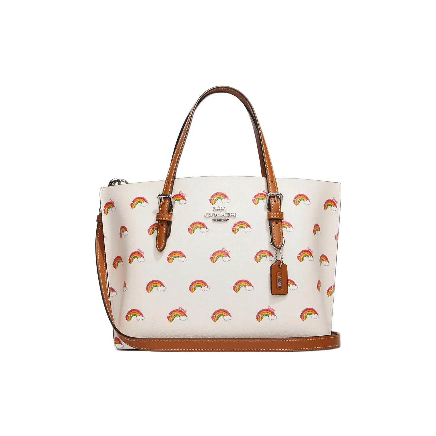 Coach Mollie Letter-Logo Rainbow Print Canvas and Leather Tote Bag for Women, White