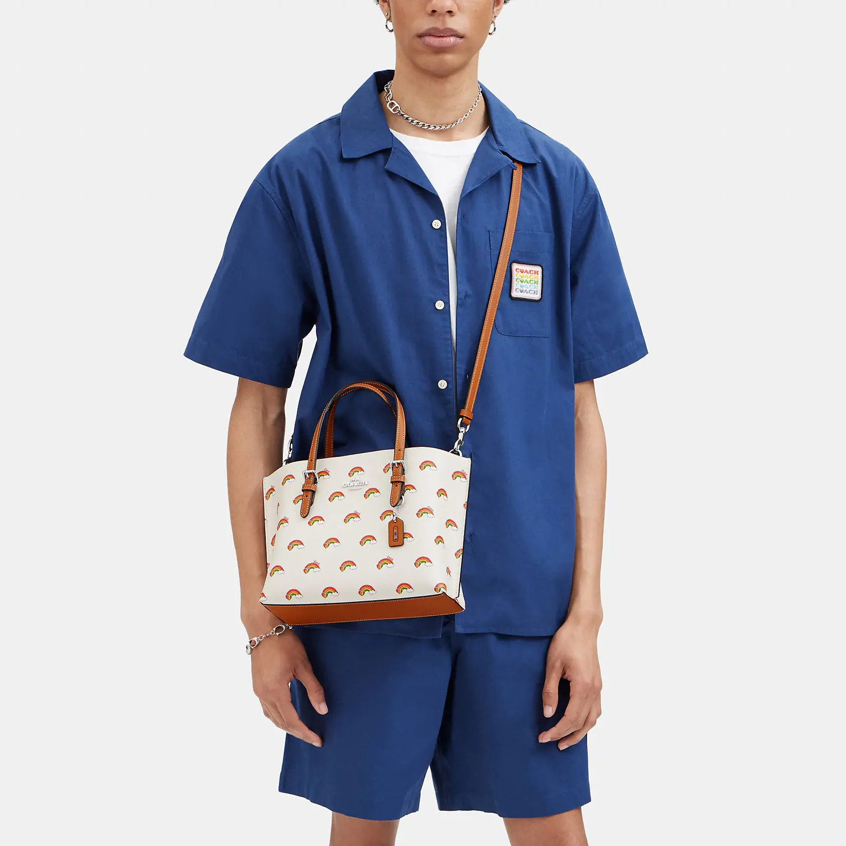 Design Concept: Inspired by NYC street art and vibrant self-expression, this tote features a playful rainbow-print canvas adorned with the iconic COACH “C” monogram logo — blending retro charm with contemporary color storytelling.