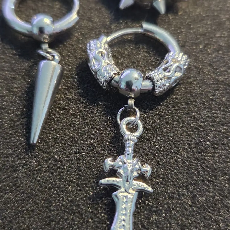 Spike hoop + dagger pendant hoop + cone pendant hoop