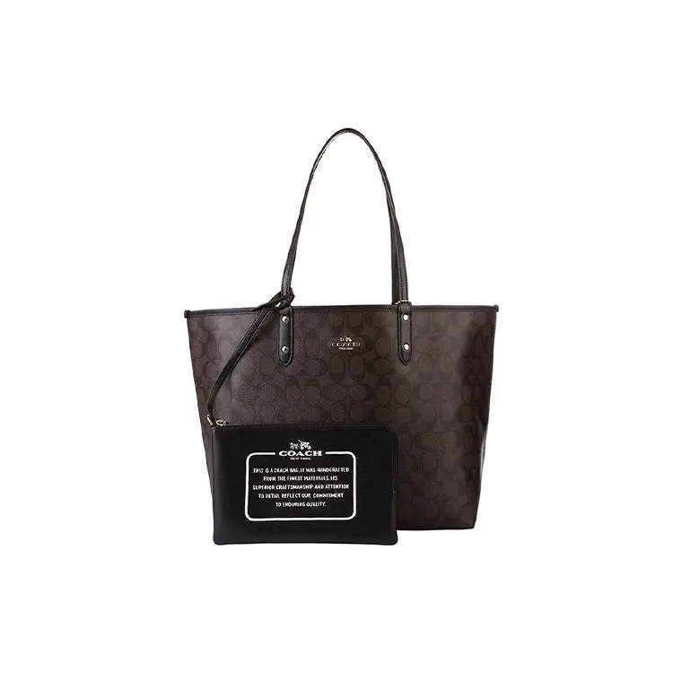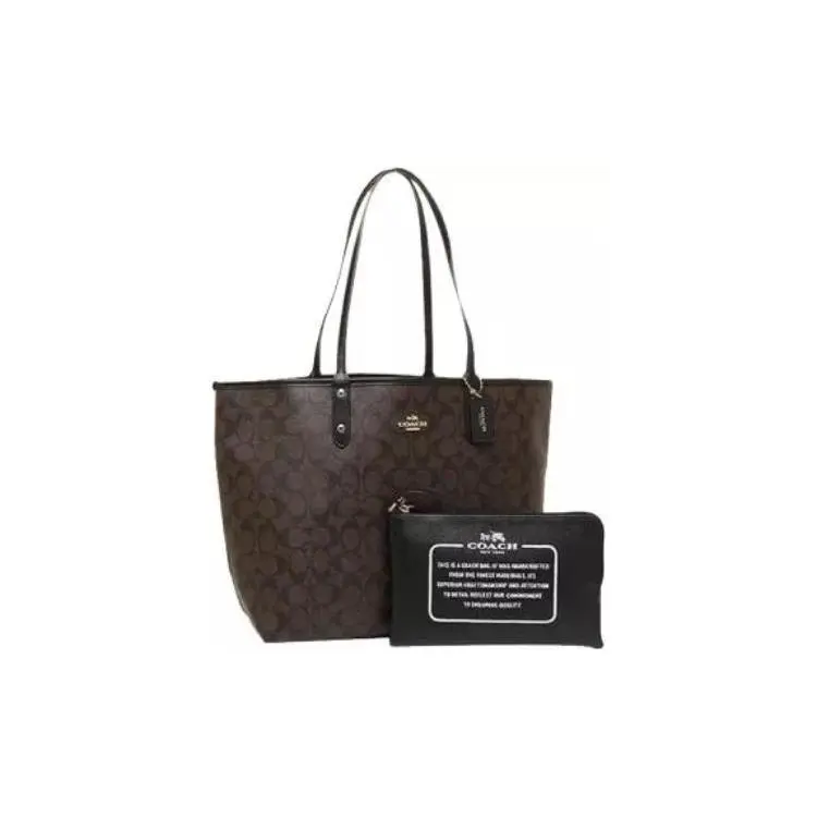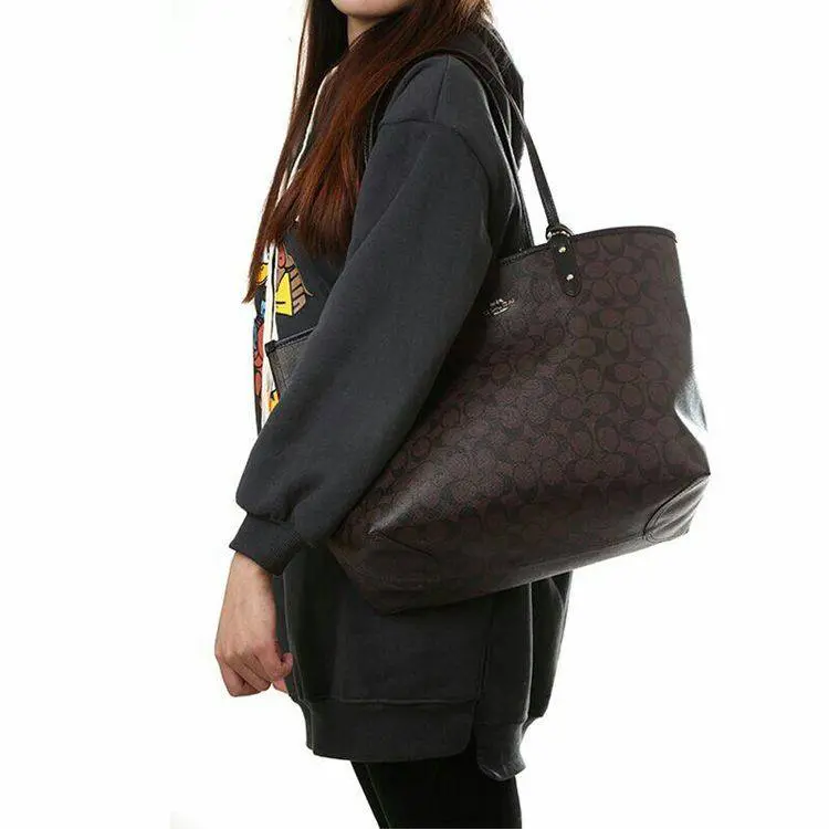 Design Concept: A thoughtfully reversible silhouette—black on one side, brown signature canvas with classic COACH “C” monogram on the other—offers two distinct looks in one bag. Clean lines, structured shape, and functional layout prioritize both elegance and everyday practicality.