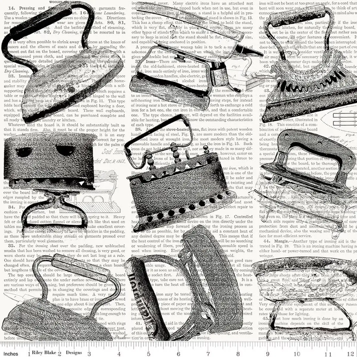 Add a fun, sewing-inspired touch to your quilts with the Press On Iron Toss Wide Back in classic black. Featuring a playful scattered iron motif, this fabric is perfect for quilters who love a little personality and humor in their projects while still keeping a clean, versatile look.