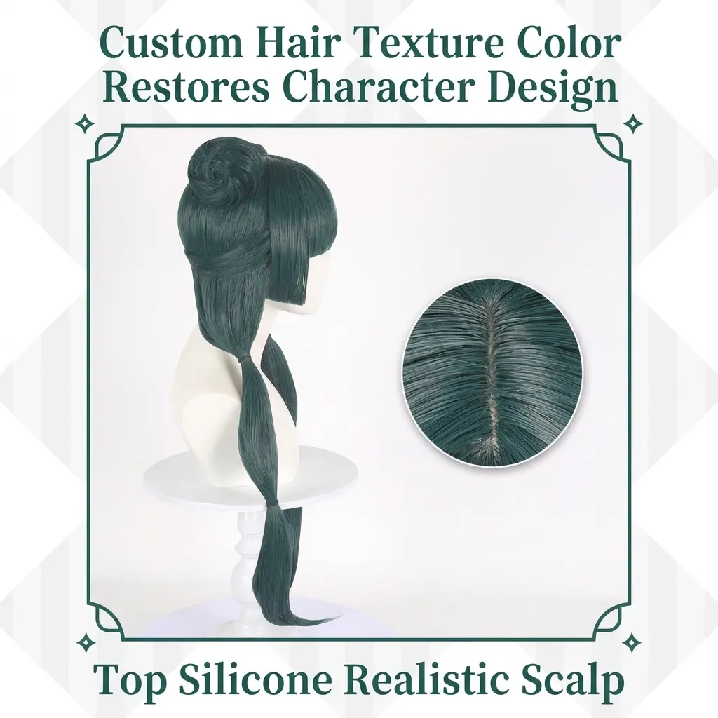 This dark green long wig with bangs is perfect for anime fans. Inspired by The Apothecary Diaries, it's ideal for conventions, photoshoots, and themed events. The wig is made from soft synthetic fibers, ensuring a natural look and comfortable wear.