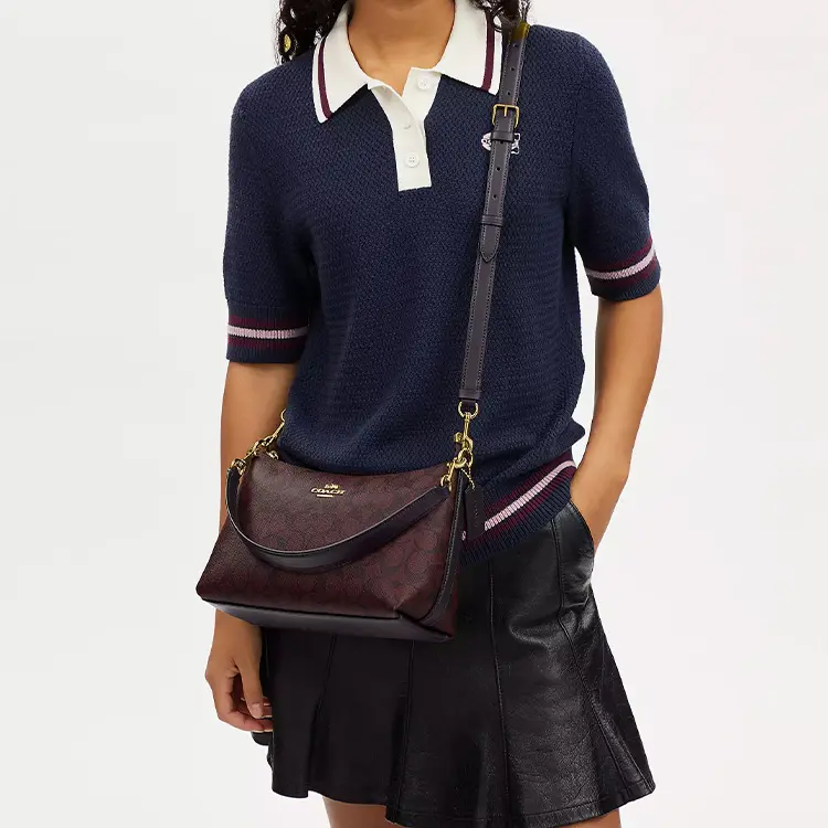 ·Signature coated canvas with smooth leather trim for durability and contrast