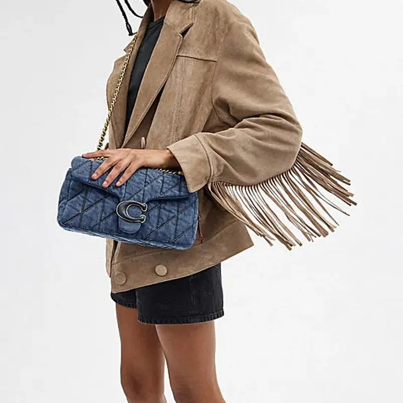 Design Concept: Clean lines meet tactile texture — the Tabby 26 features subtle quilted patterning, a signature turn-lock closure, and an oversized COACH logo patch crafted from debossed leather. Its compact yet functional shape balances sophistication and ease.