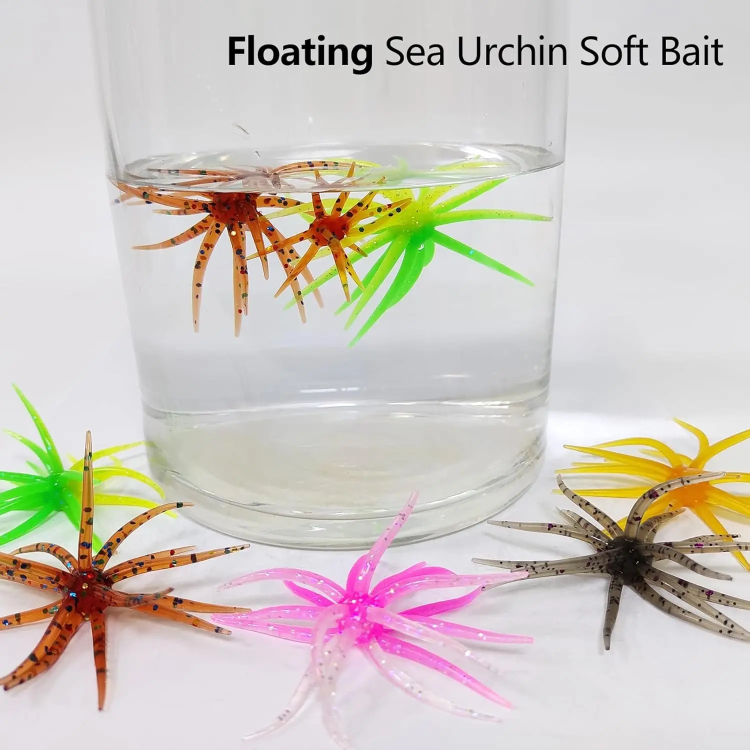 Lure Bait for Black Pits, Realistic Sea Urchin Soft Fishing Lures, Floating TPR Swimbait with Reflective Stars, Soft Artificial Sea Urchin Lures for Shore, Trout, River, Lake, Saltwater, Slow Sinking & Floating Options for Drop Shot & Finesse Fishing