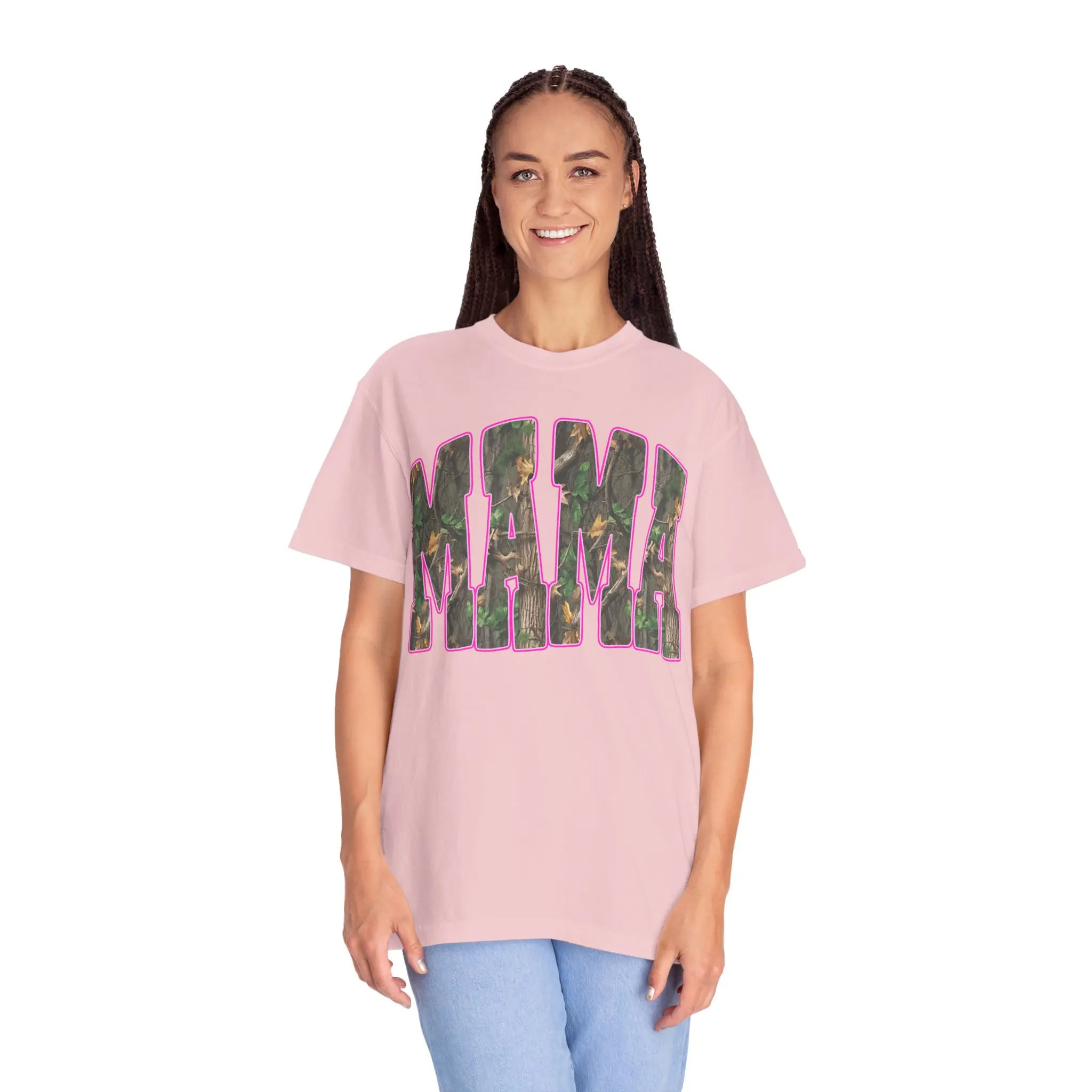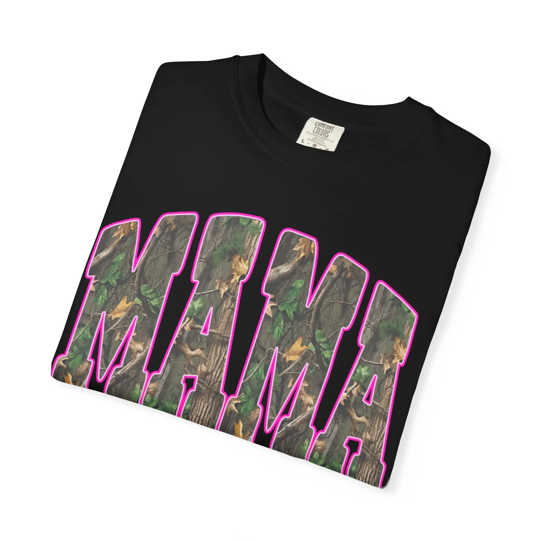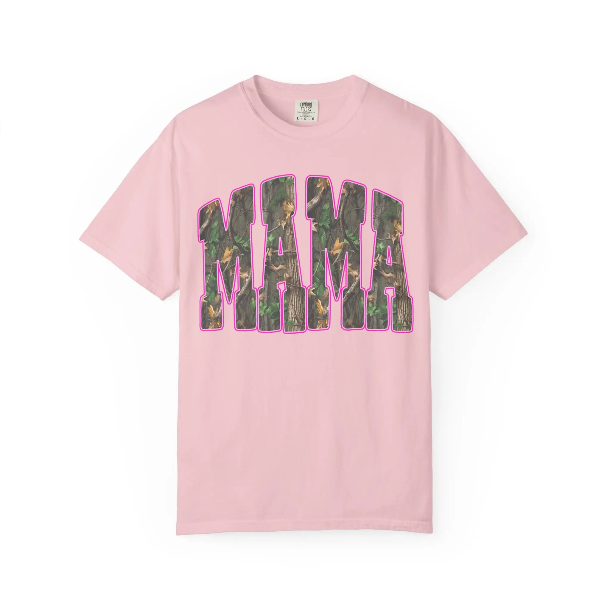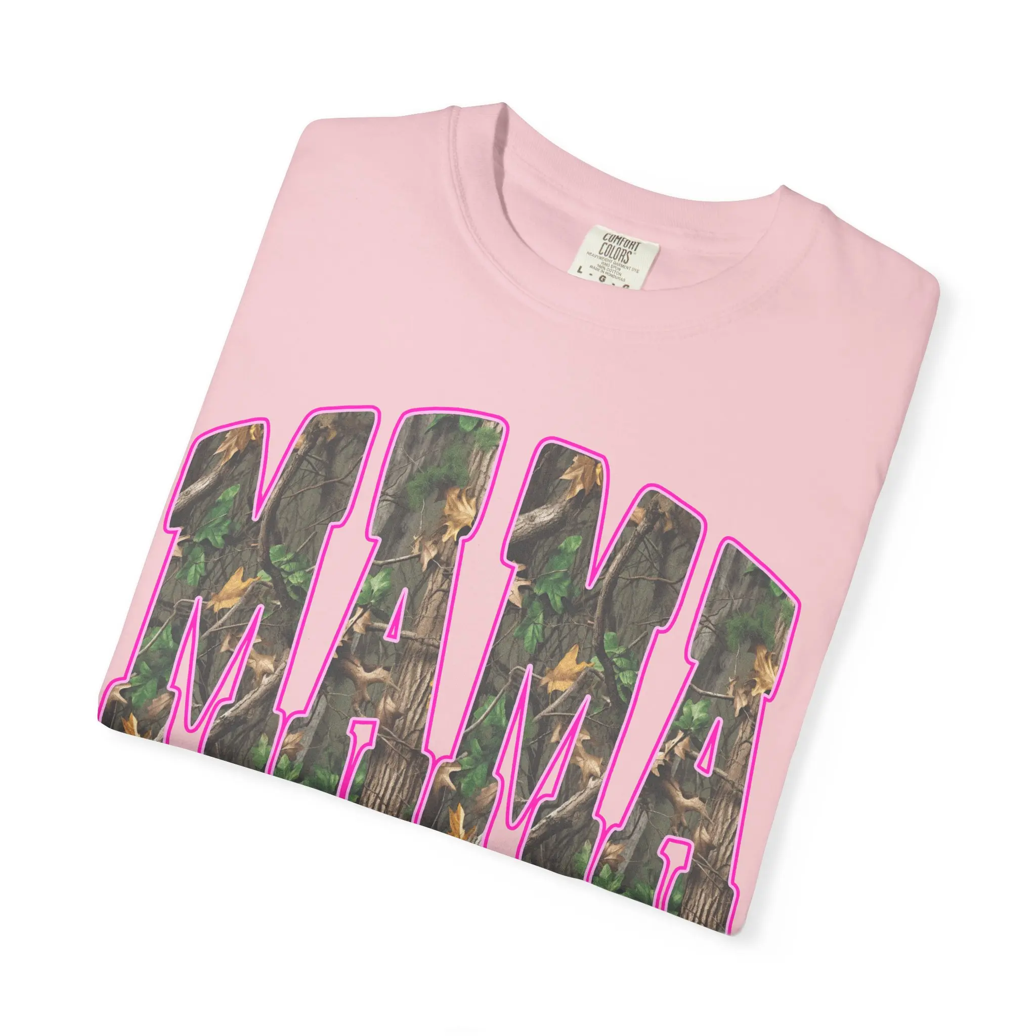 This garment-dyed tee brings a lived-in, cozy feel to weekend rhythms and everyday chores. Chunky block letters spell out “MAMA” across the chest, filled with a subtle camouflage print and framed by a warm pink outline — a blend of rugged and tender that reads like a quiet declaration. The heavyweight cotton and relaxed cut sit right for muddy boots, stroller runs, or slow coffee on the porch. Colors soften with wear so the tee grows more personal over time, pairing easily with denim, flannels, or a worn-in cardigan. It’s for people who move between outdoors and home with equal ease — steady, familiar, and a little playful.