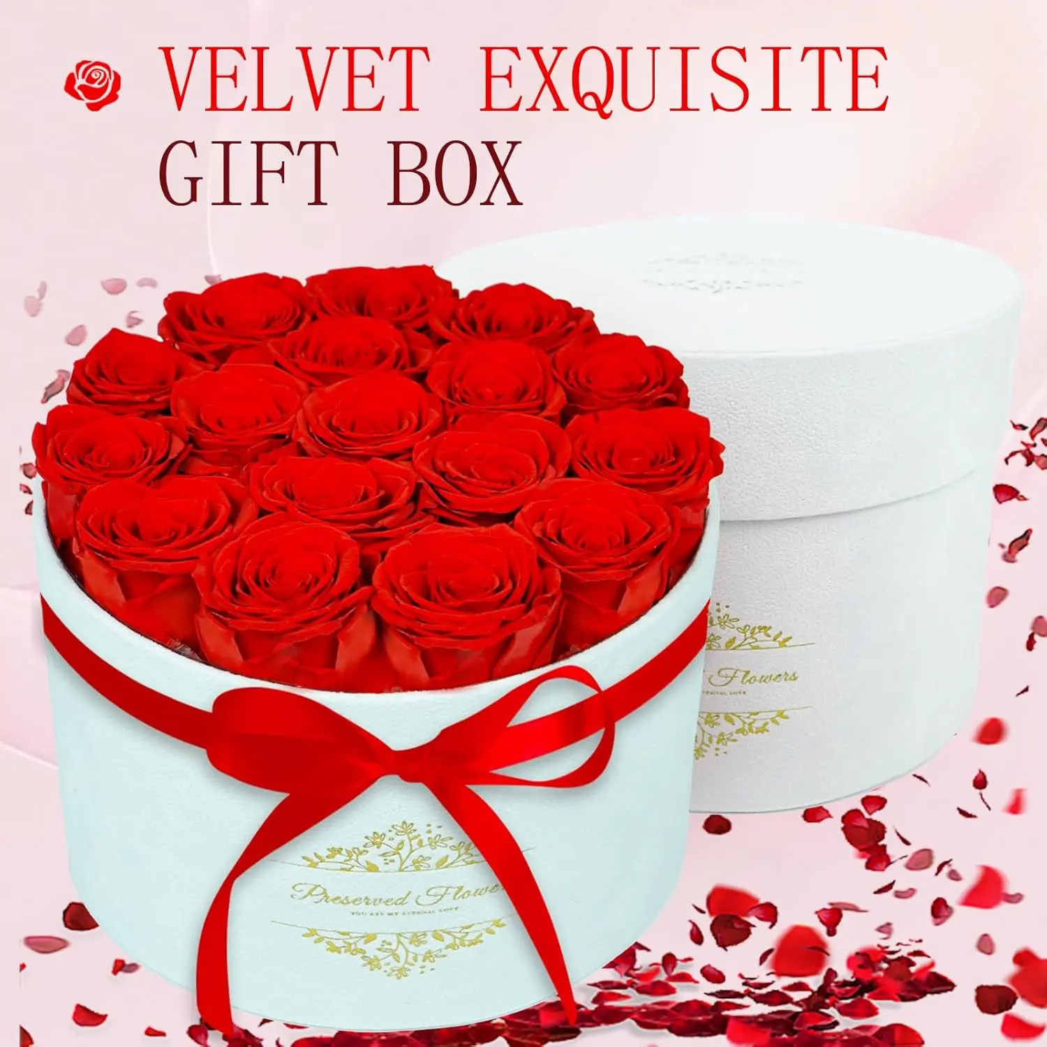·【Velvet Exquisite Gift Box】Each round preserved flowers gift box contains 17 selected roses (roses 2-2.5 inches in diameter) in a velvet luxury gift box, ready to give as a gift without additional packaging. In addition, a customizable greeting card is also included for you to write your most sincere wishes. This is a perfect birthday gifts for women and anniversary gifts for women