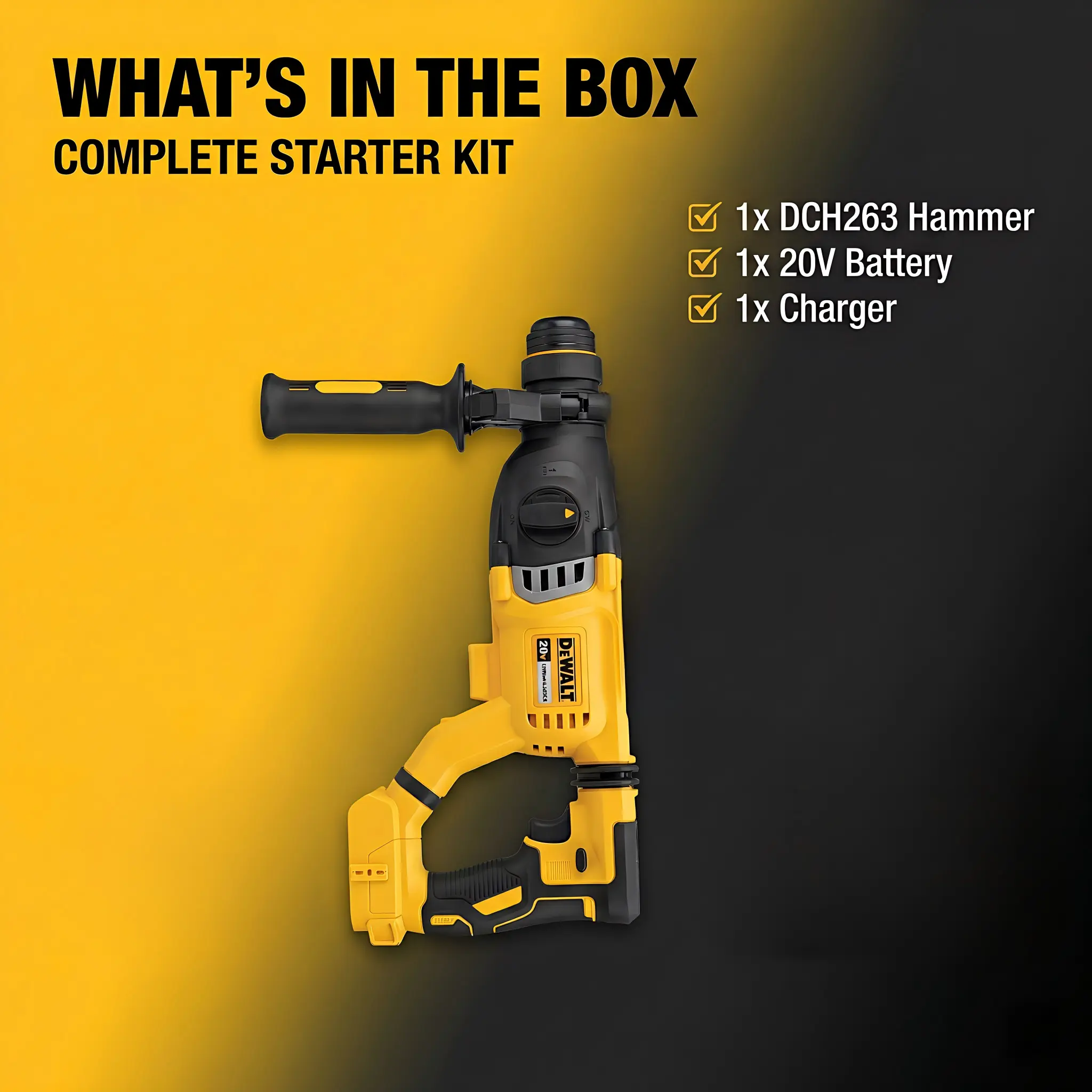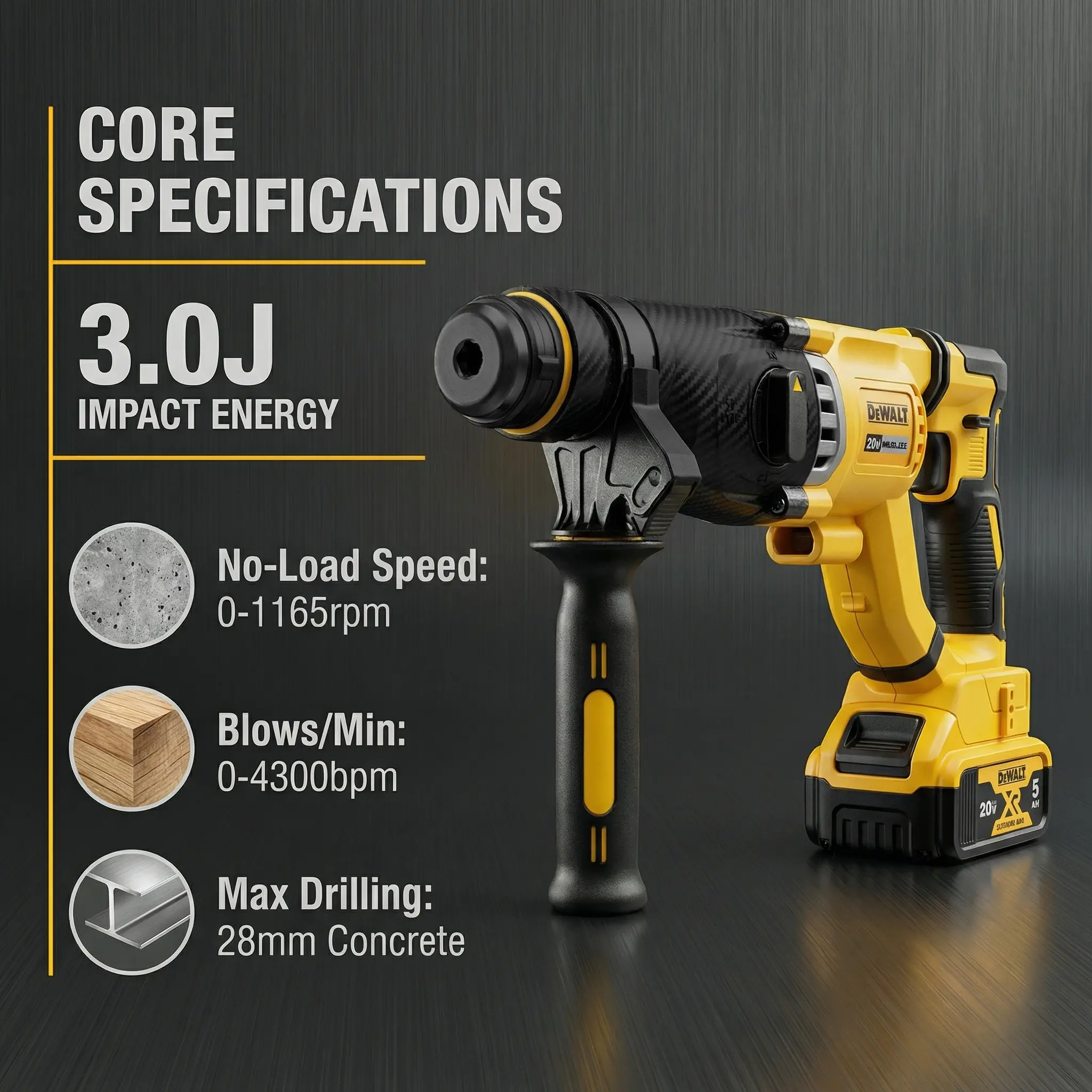 Dewalt DCH263 20V Hammer Drill Bundle: 3.0J Energy, 1165rpm Variable Speed, One Battery & Charger
