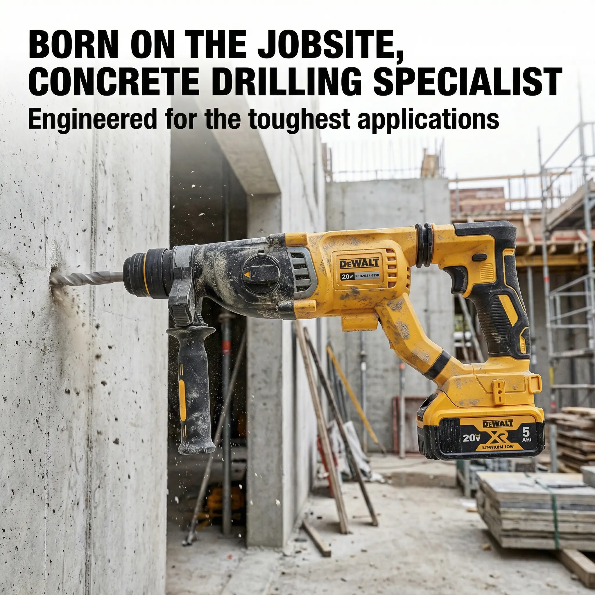Dewalt DCH273 Concrete Drill Set: 4-12mm Optimal Range, 0-4600bpm, with 20V Battery & Charger