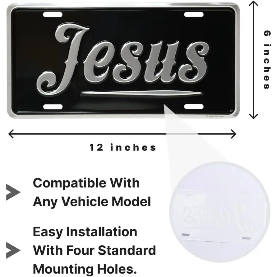 Share your faith with this premiumJesus Silver License Plate– a deluxe inspirational auto tag crafted for those who want their vehicle to reflect what they believe.Featuringheavy gauge embossed aluminumwith a durablebaked enamel finish, this plate is built to last through every season and every mile.