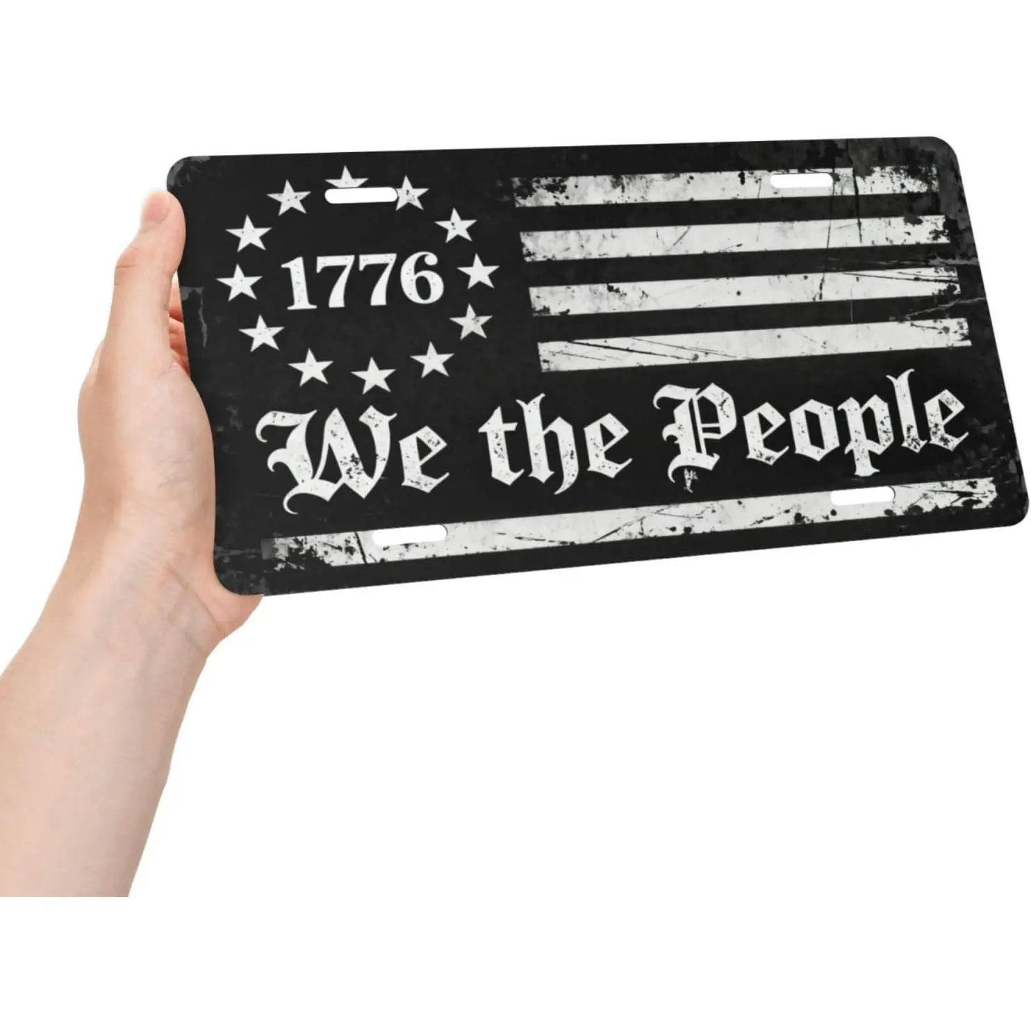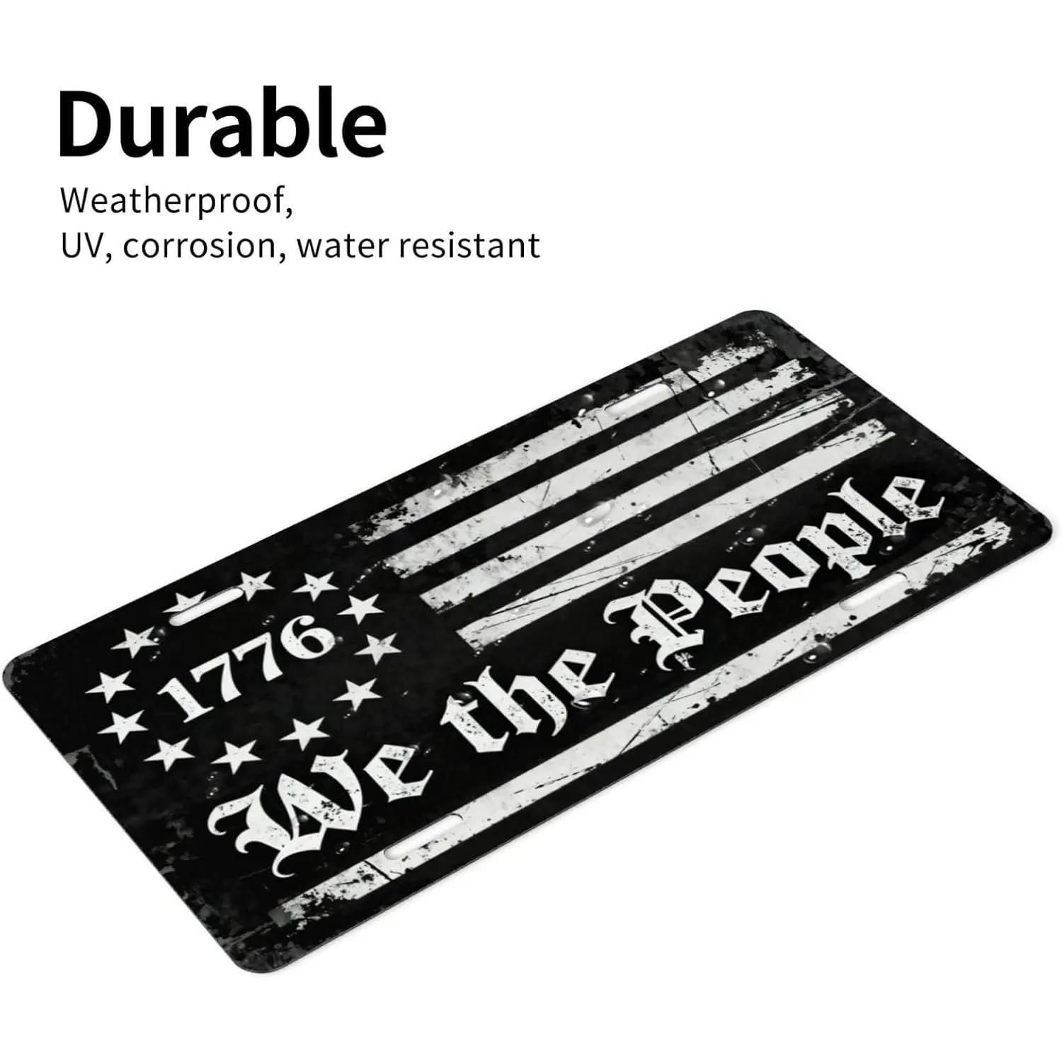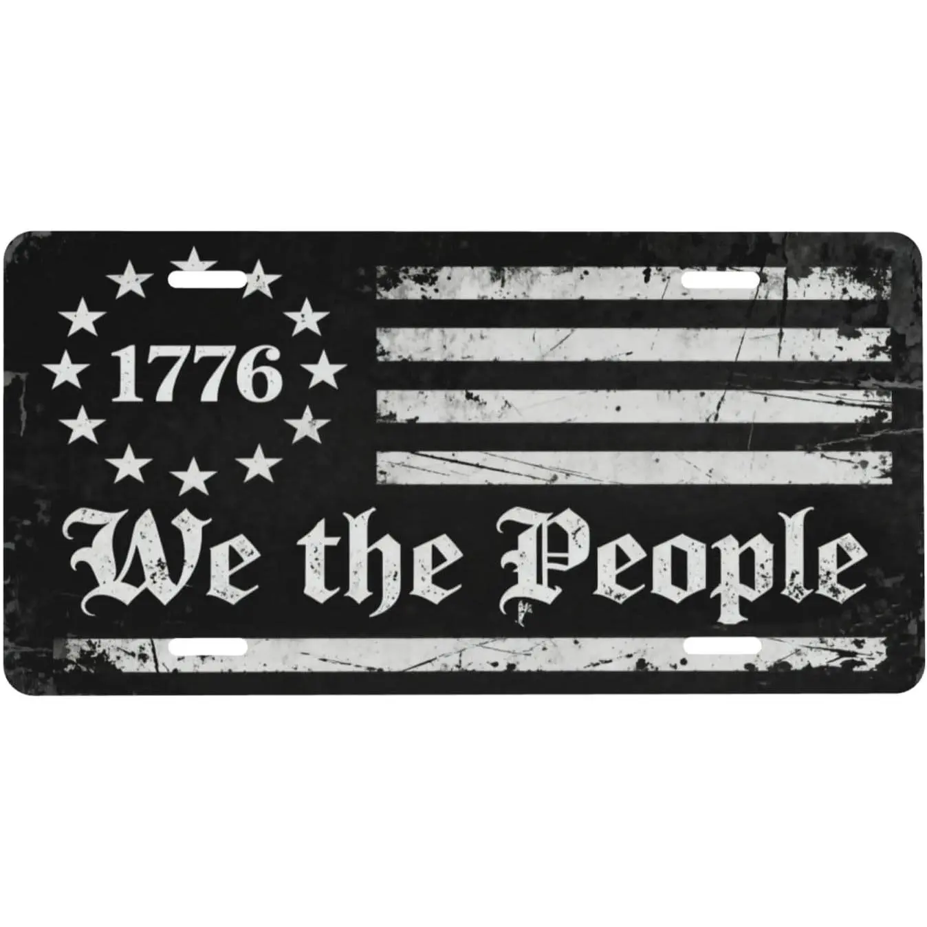 We the people black white american flag front license plate 6x12.Patriotic constitution vanity tag for car truck suv.Usa metal cover with 4 holes.