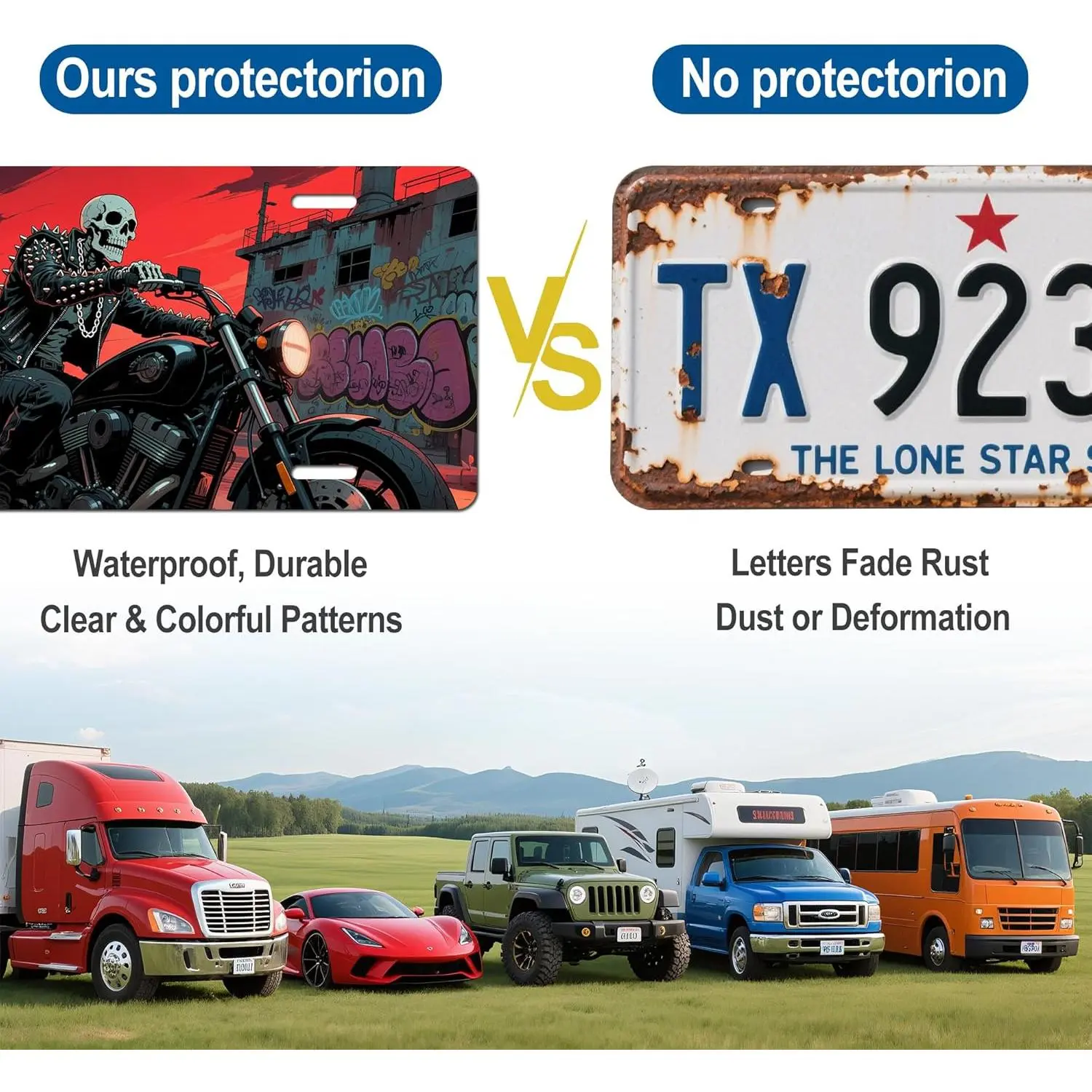 Make a bold statement on the road with thisSkull American Flag Front License Plate!Featuring a fierceskull designfused with thestars and stripes– capturing the spirit of American freedom, punk rebellion, biker culture, and rock and roll attitude.Perfect for motorcyclists, rock fans, patriots, and anyone who lives life on their own terms.Made of durable, weather-resistant aluminum with UV coating, size 6x12 inches – fits most car, truck, SUV, and van front bumpers-1-4.
