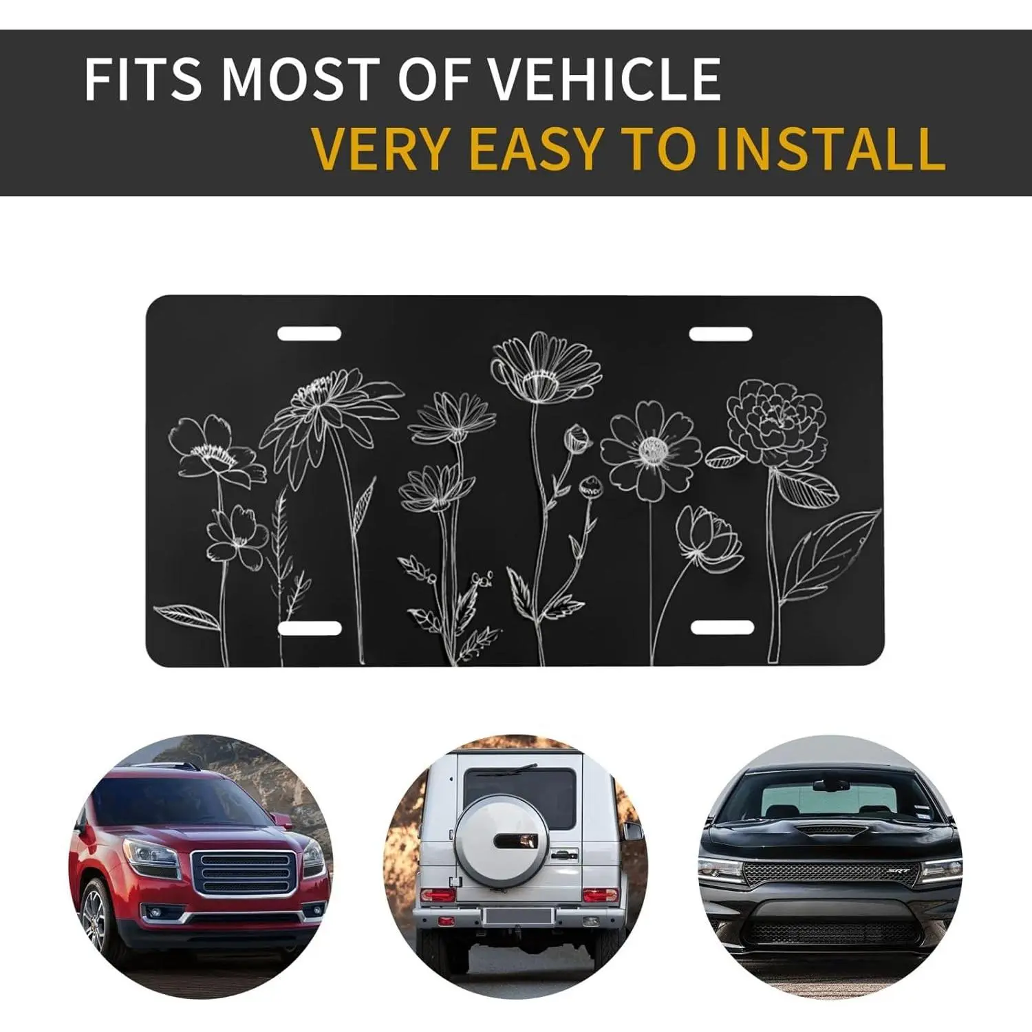 Bring the beauty of a wildflower meadow to your car with thisWildflower Hand Drawn Front License Plate!Featuring a charminghand-drawn floral/botanical designwith delicate wildflowers – perfect for nature lovers, garden enthusiasts, and anyone who appreciates the artistic beauty of wild blooms.Made of durable, weather-resistant aluminum with UV coating, size 6x12 inches – fits most car, truck, and SUV front bumpers.