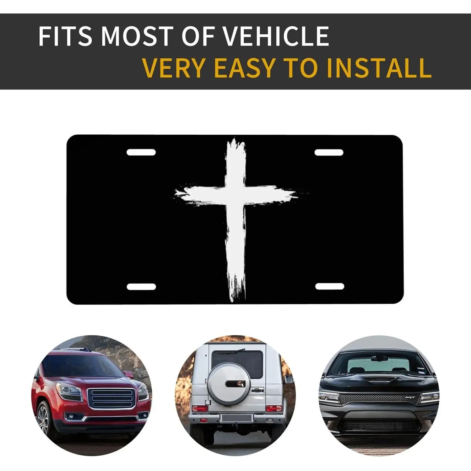 Cross jesus front license plate 6x12.Christian aluminum vanity tag for car truck suv.Religious gift with 4 holes for men women.