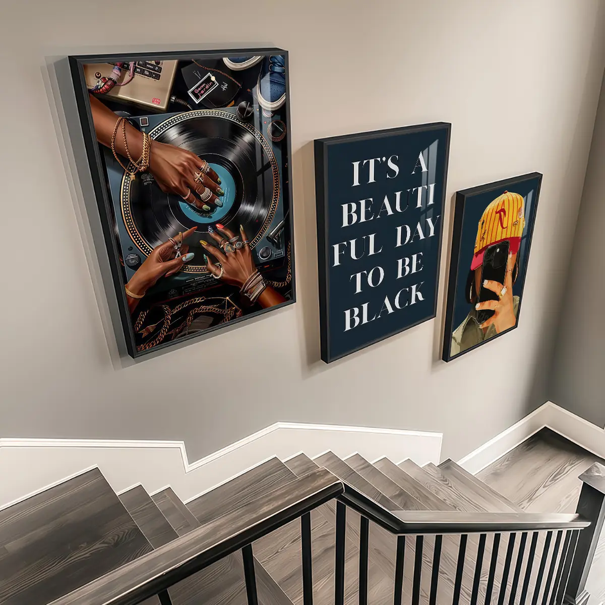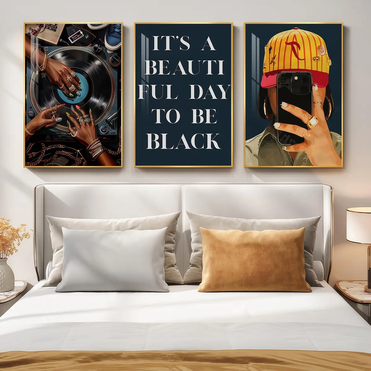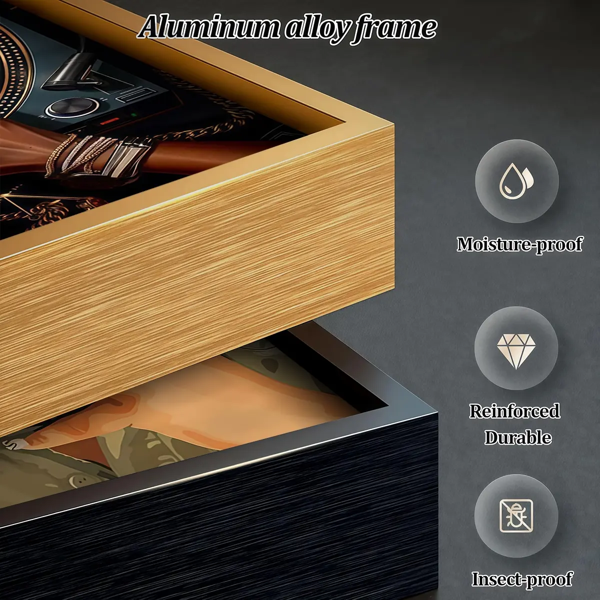 3 Counts Aluminum Alloy Framed Painting, Retro Vinyl Record And Modern Portrait Art Pictures, Home Decoration For Living Room, Bedroom, Office, Restaurant, Hallway Wall Decor, Odorless Print Artwork, Luxury Perfect Gift For Friends And Family