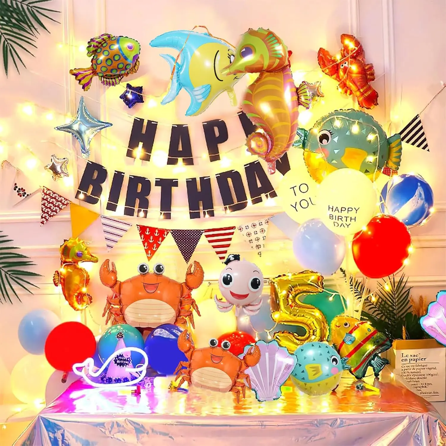 SITAKEYFMHK Ultimate under the sea party set!15pcs cute ocean balloons including starfish, octopus, lobster & giant sea balloon for baby shark birthday celebrations🎉