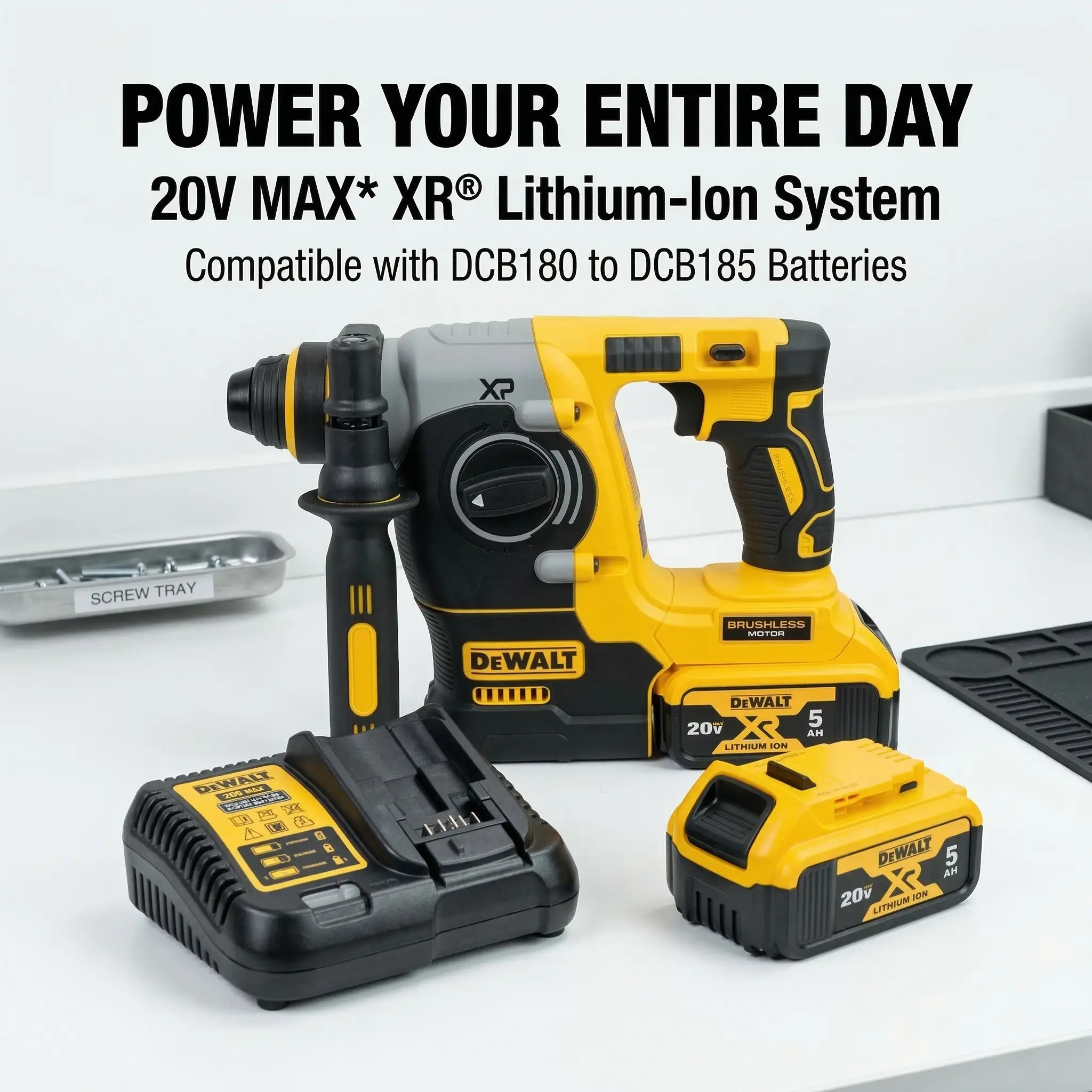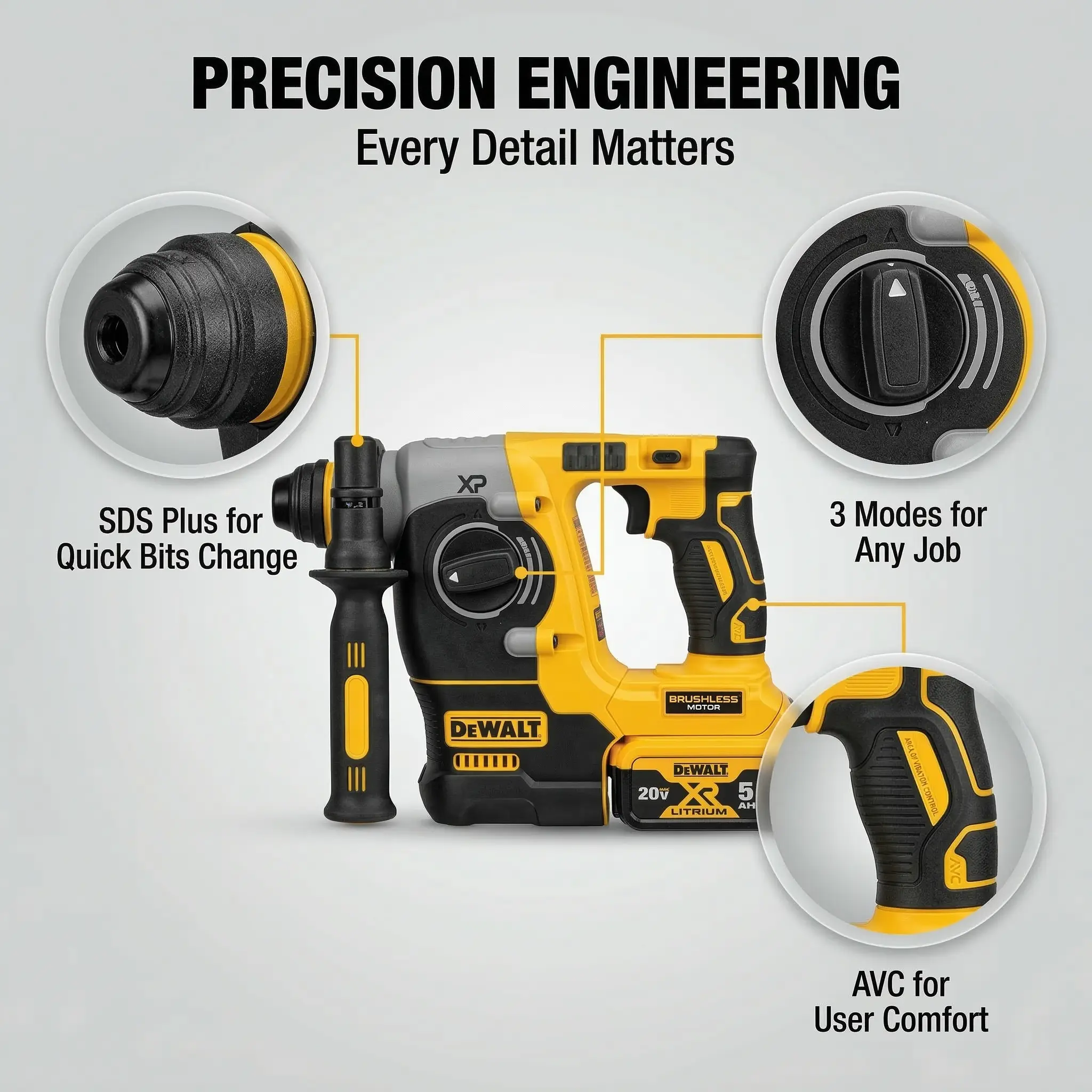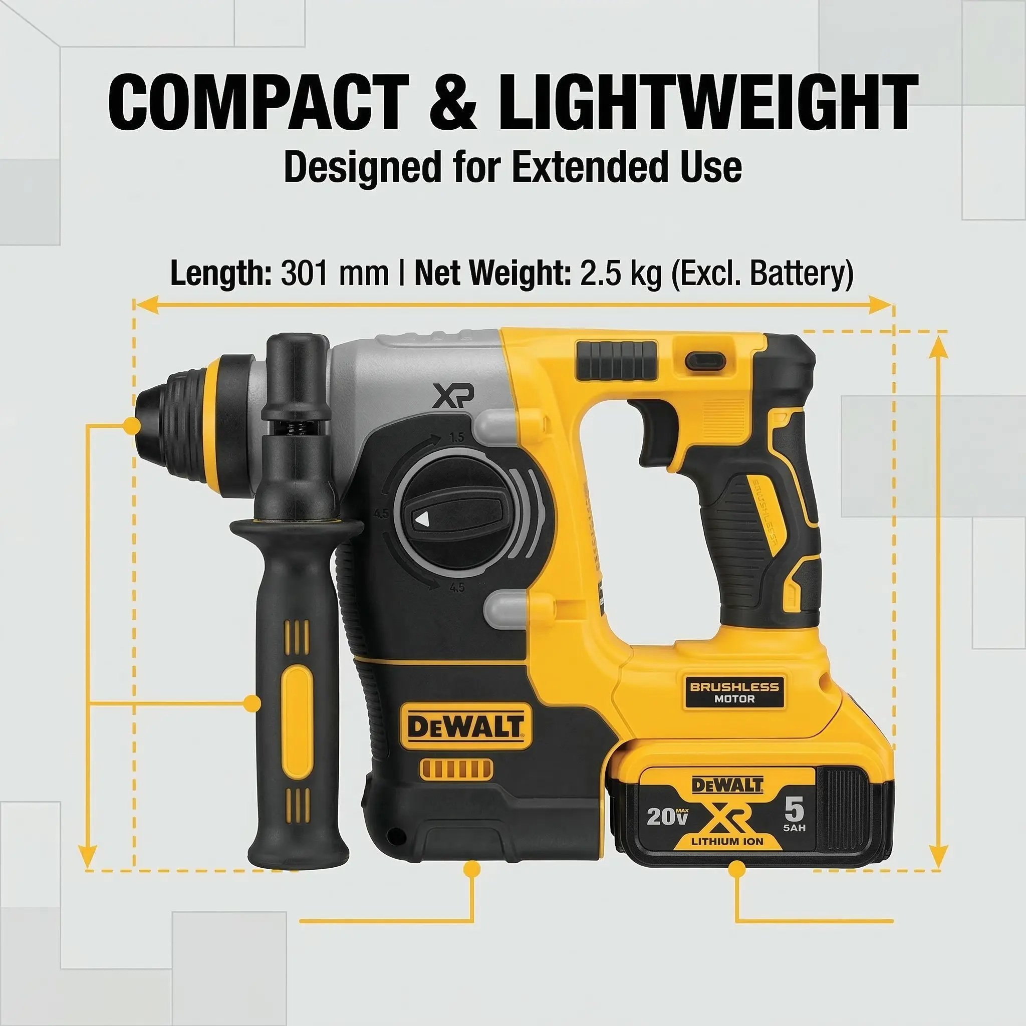Dewalt DCH273 Rotary Hammer Drill Kit – Brushless Motor, 20V Battery – For Concrete, Wood & Metal Drilling – Lightweight with 2.4J Impact Energy & Variable Speed