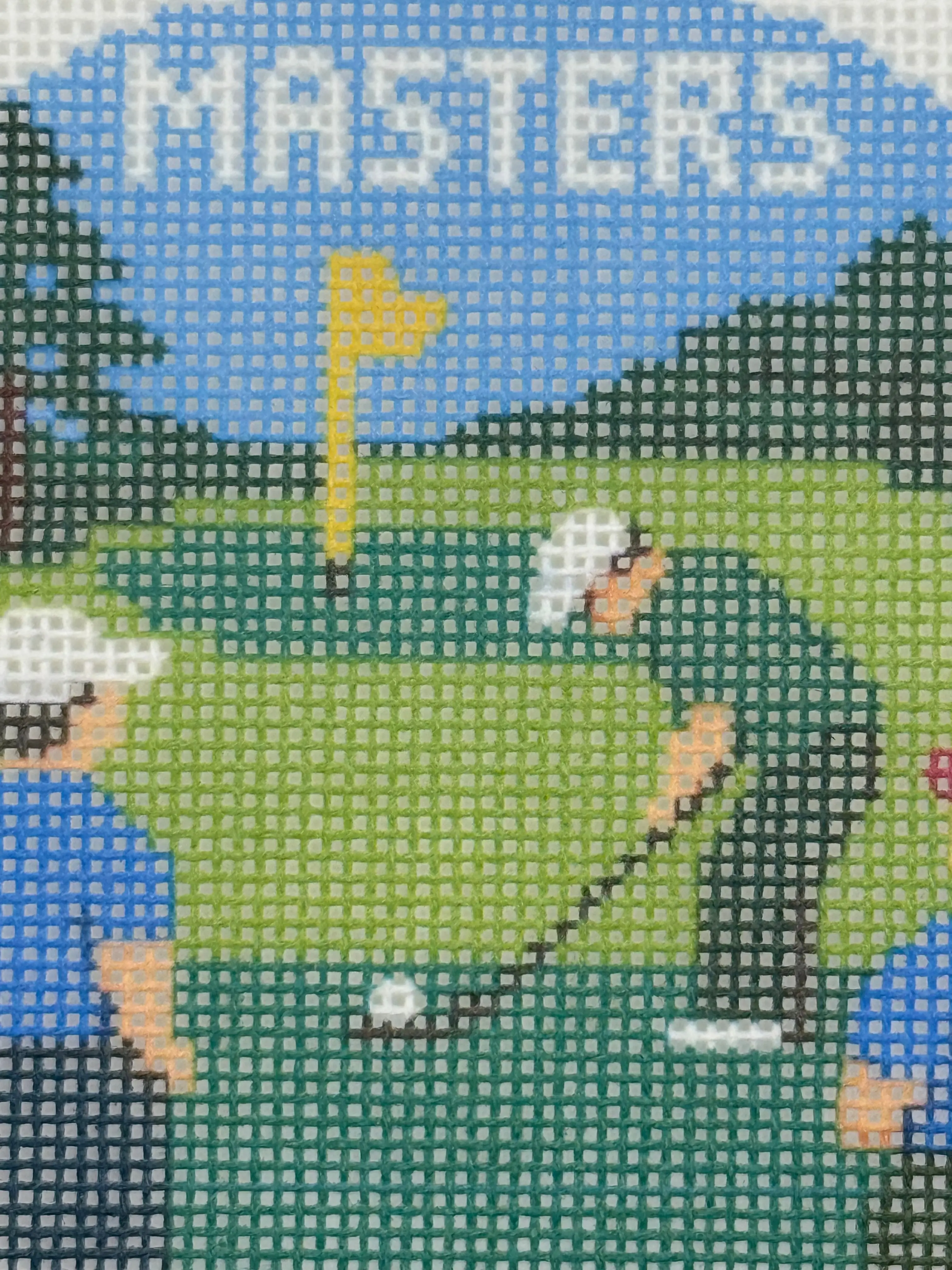 Celebrate one of golf’s most iconic traditions with this charming The Golf Masters Needlepoint Canvas! This 4-inch round design captures the excitement of tournament day, featuring a golfer lining up the perfect putt surrounded by spectators and a beautifully manicured green.