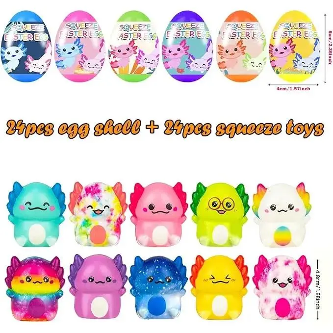 24-Pack Prefilled Easter Eggs – Random Slow Squishy Toys Inside | Fun for Hunts, Favors & Basket Stuffers Colorful Gradient Dragon Statue christmas Handmade Grape Crystal Mochi Set Cute Toothed Plush Stress Relief Glutinous Rice Cake Vibrant Tool