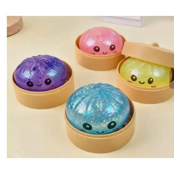 5. Three random steamed buns,Mystery Dumpling Squashy Stress Ball, Jumbo Rainbow Mystery Squishy Bun Sensory Toys for Anxiety Relief Fidget, Soft Squeeze Toys for Adults & Kids with Food Steamer Stretchy Desk Toys Classroom Prizes & Party Favors easter eggs