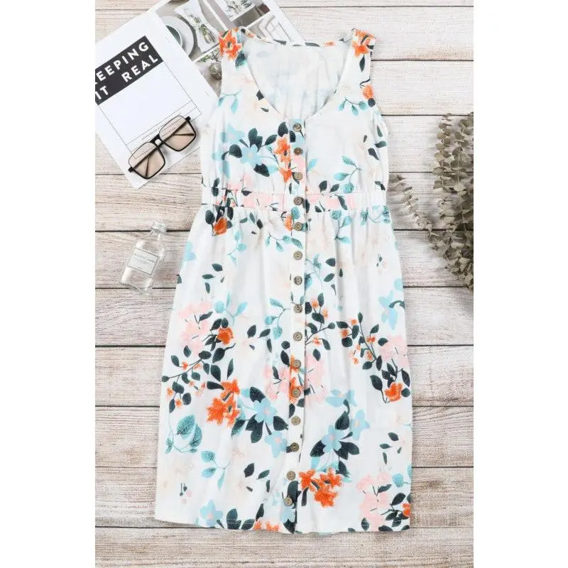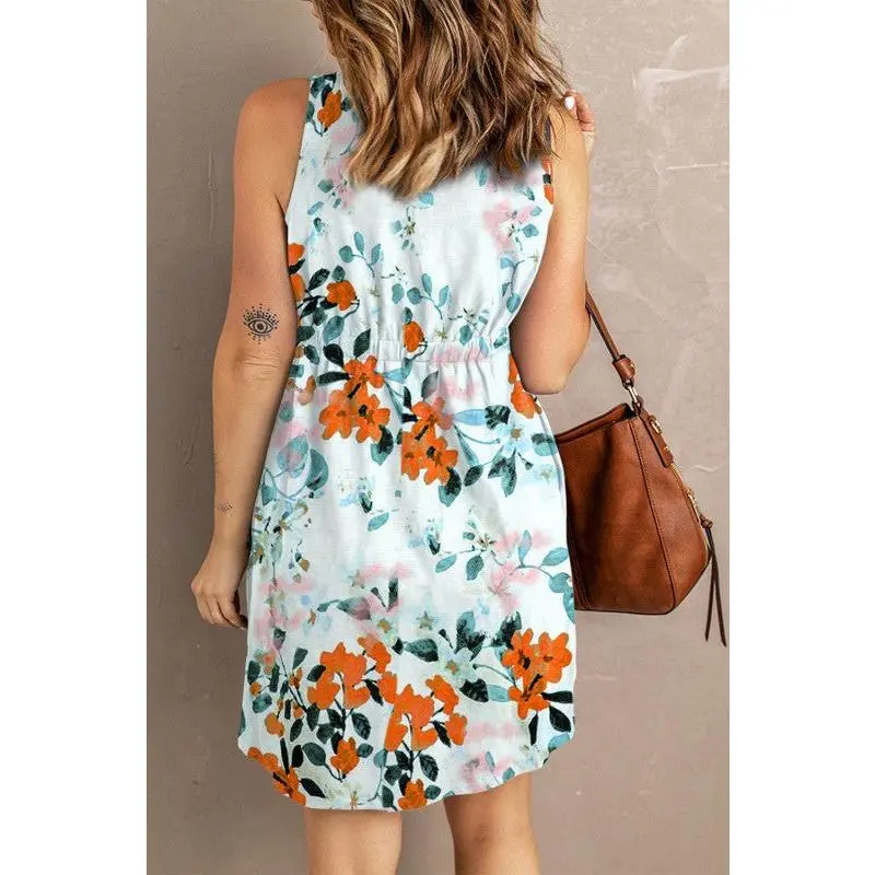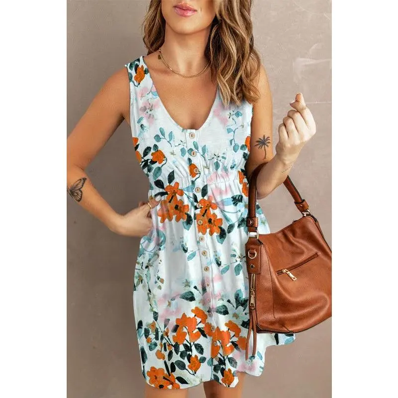 Rock that casual-cool vibe with this adorable mini dress, complete with a trendy palm leaves print that screams effortless style. The sleeveless design lets your best features shine while the button-up crew neckline makes it super easy to slip on and off. Paired with a flattering high-waist cut, this dress hugs your curves in all the right ways and keeps you looking fabulous all day long. Perfect for those days when you want to look put-together without trying too hard! Polyester/Spandex