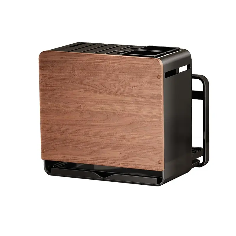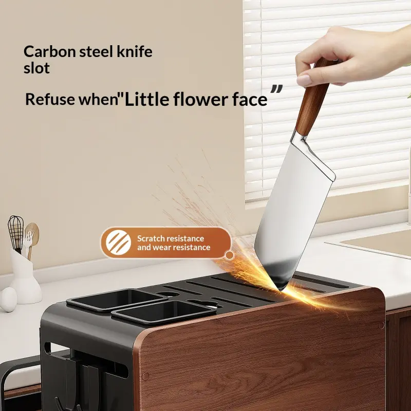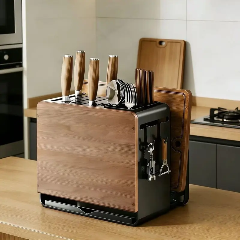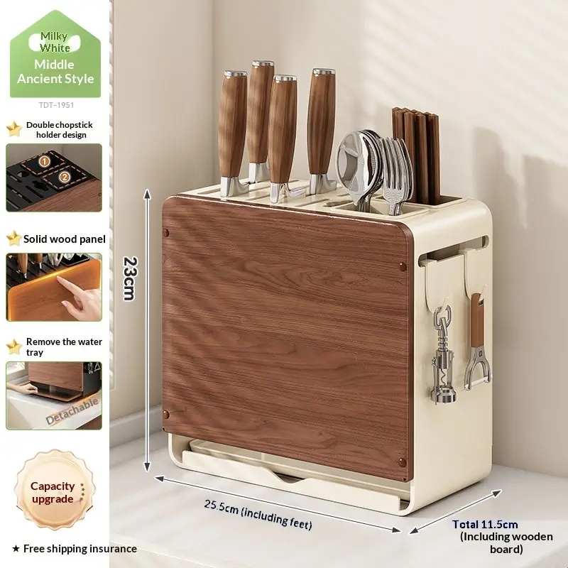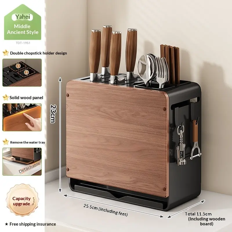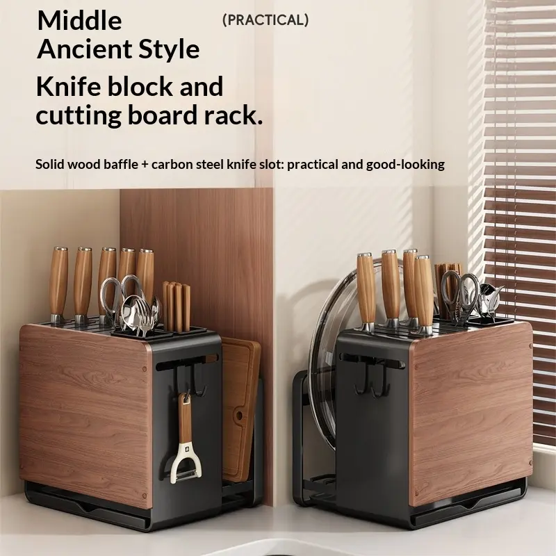 1pc New Vintage Chinese Style Wooden Knife Block - Countertop All-in-One Organizer for Knives, Cutting Boards & Chopsticks! Sturdy Solid Wood Holder, Space-Saving Design, Stylish Kitchen Storage Rack for Home Use