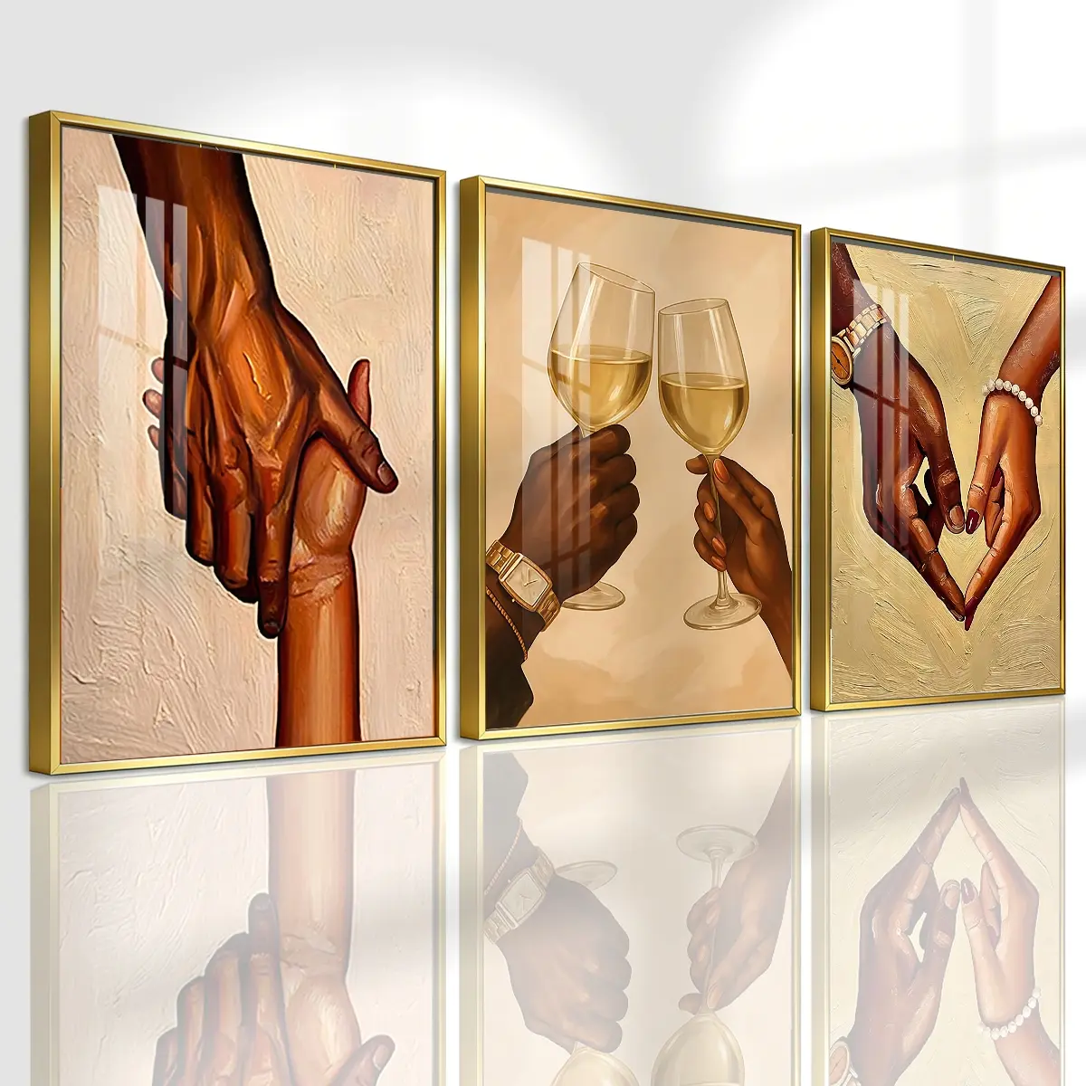 3 Counts Aluminum Alloy Framed Painting, Romantic Couple Hands And Wine Glass Canvas Art, Home Decoration For Living Room, Bedroom, Office, Restaurant, Hallway Wall Decor, Odorless Print Artwork, Luxury Perfect Gift For Friends And Family