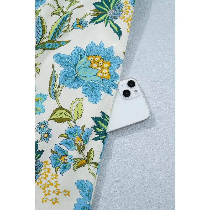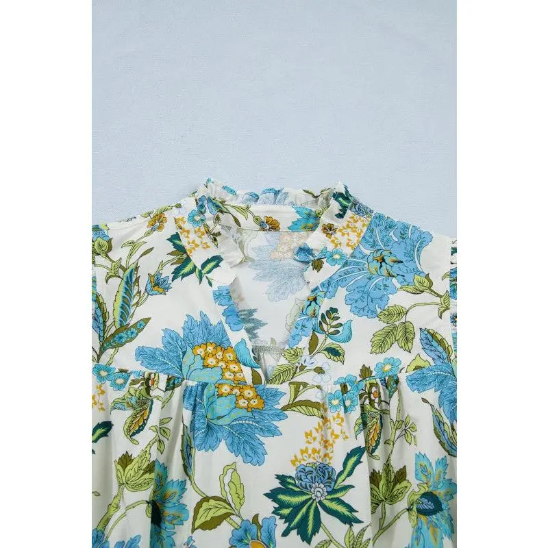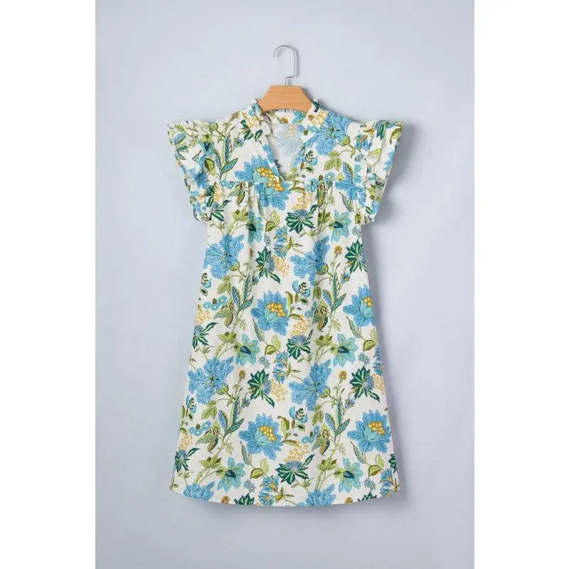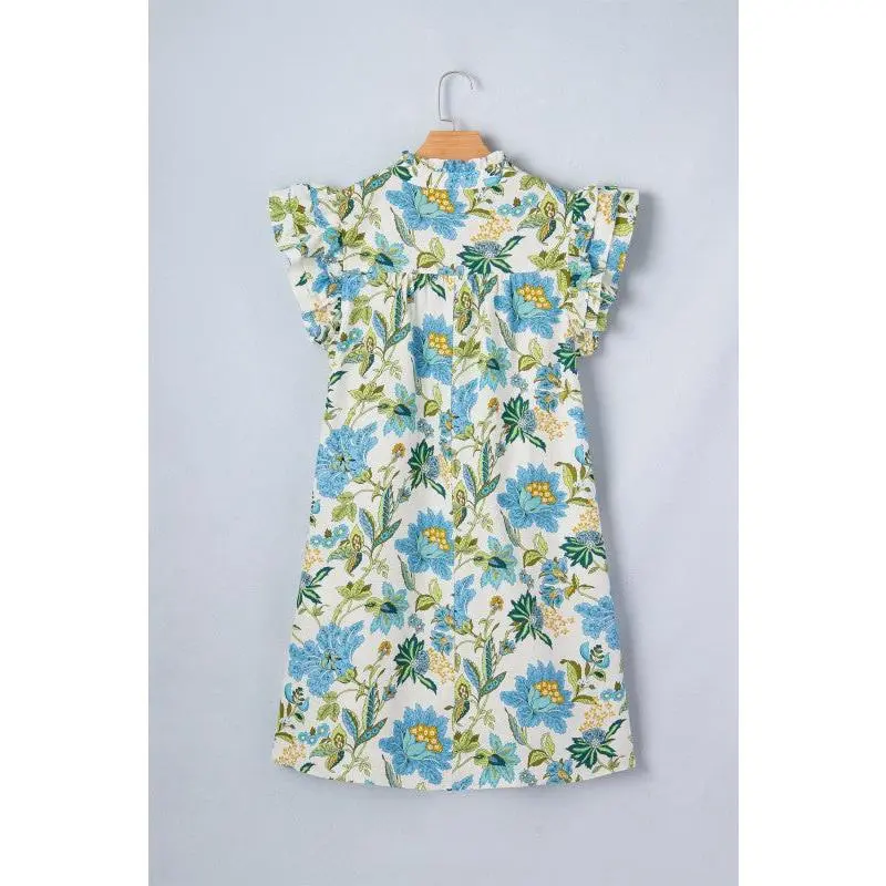 Bloom into effortless style with this charming shift mini dress. The soft floral print brings garden-fresh appeal, while the flattering V neckline frames your face beautifully. Triple ruffle short sleeves add a playful, romantic touch that dances with every move. The relaxed shift silhouette skims your figure without clinging, making it perfect for all-day comfort whether you're heading to brunch or a casual gathering. A dress that feels as good as it looks. Cotton/Viscose