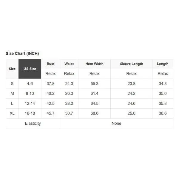 See size chart for approximate measurements.