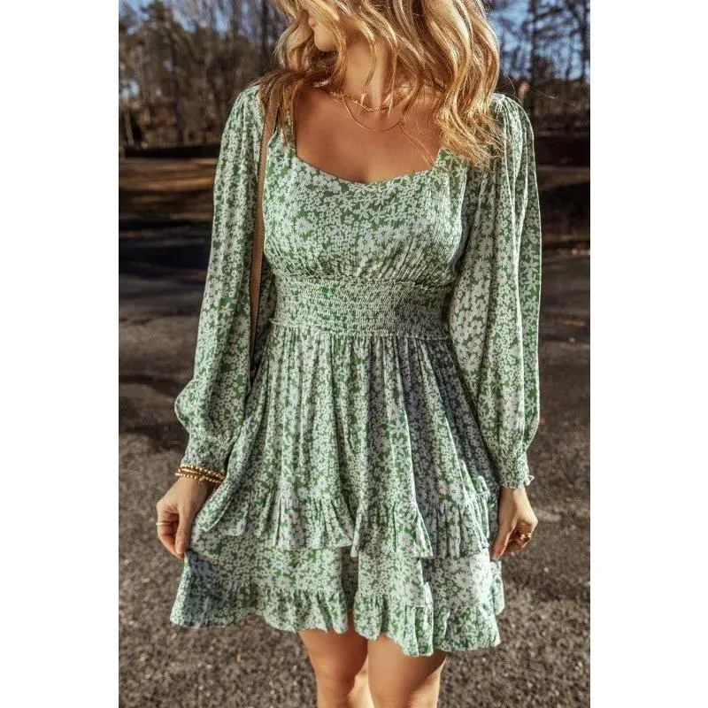 Step into the season with this enchanting mini dress! The charming neckline and whimsical lantern sleeves create a modern twist on romantic style, while the shirred waist cinches beautifully to flatter your figure. Cascading tiered ruffles add playful movement and dimension, making this the perfect pick for garden parties, brunch dates, or any occasion calling for a touch of feminine flair. Effortlessly chic and undeniably cute! 100% Polyester