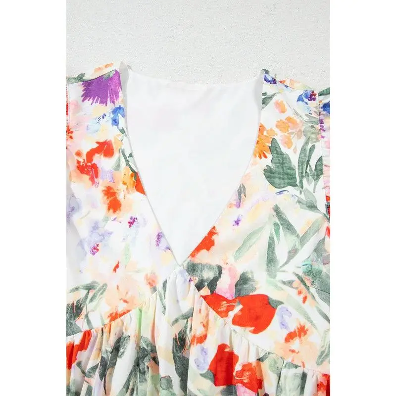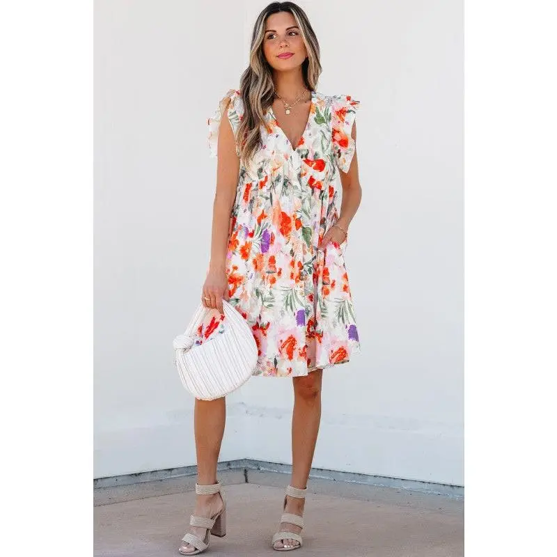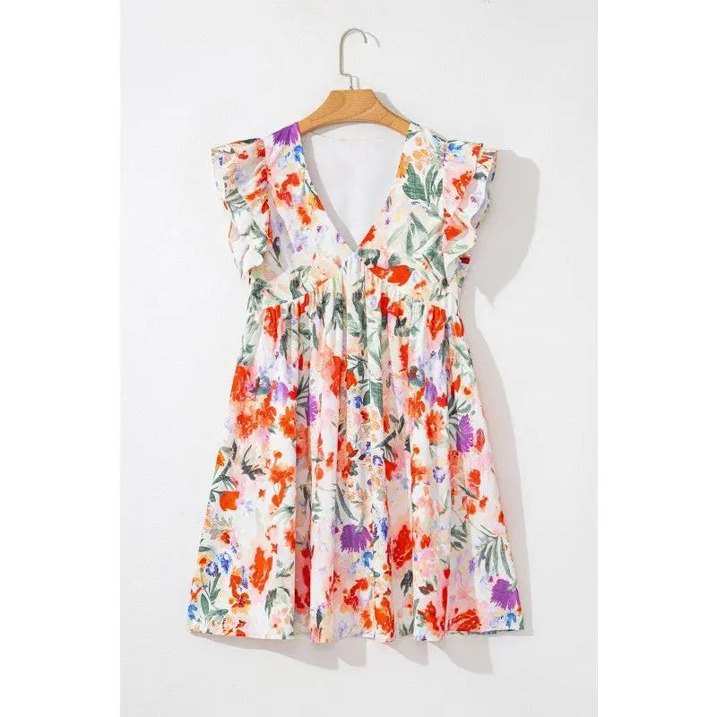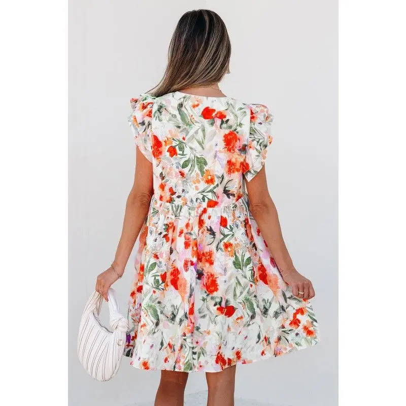 Embrace the season with this enchanting mini dress that brings spring-summer magic to your wardrobe. The delicate floral pattern radiates sweetness and charm, while double ruffled sleeves add a whimsical, graceful touch. The empire waist design flatters your silhouette beautifully, creating a slimming effect that lets you feel confident and fabulous. Perfect for garden parties, brunch dates, or any occasion calling for effortless elegance with a playful twist. 100% Polyester
