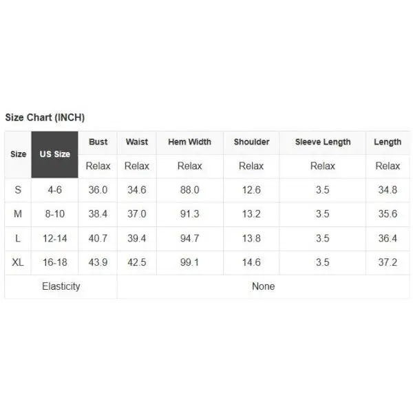 See size chart for approximate measurements