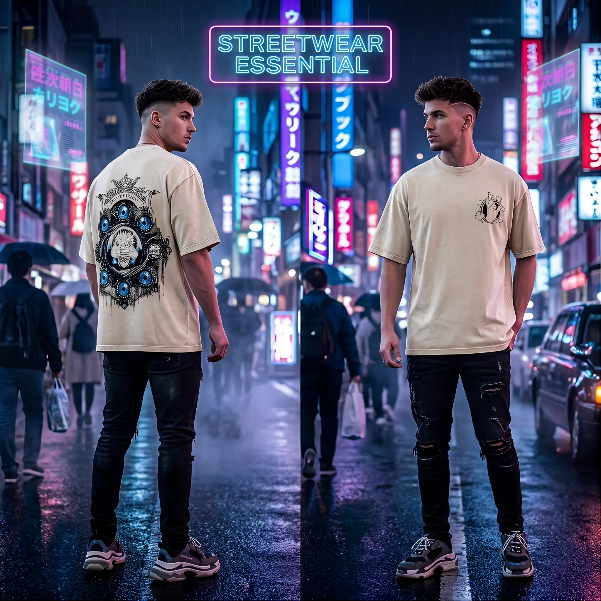 Each piece features aunique anime-inspired drawing printEach T-shirt has a slightly different artistic streetwear vibe. No two pieces feel exactly the same, making your outfit more unique and personal.