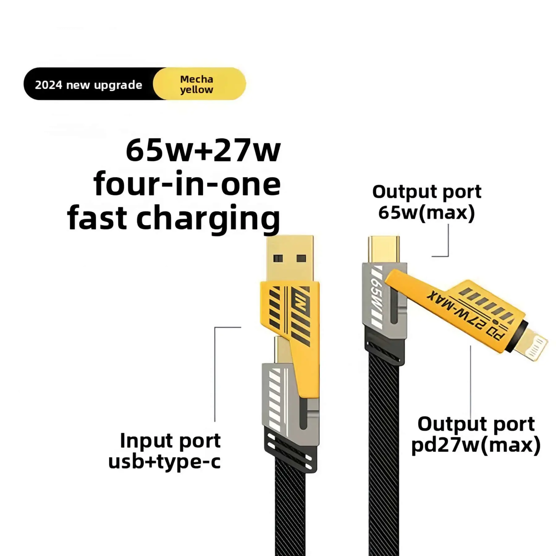 ·3A Fast Charging: Experience a new level of charging with the 4-in-1 Universal Charging Cable. It supports PD3.0 and QC3.0 with a maximum power output of 65W (USB-C connection) / PD 27W (Lightning connection). Featuring advanced 5-core low-loss tinned copper wires, this cable offers lower resistance, allowing you to charge your iPhone 15 to 50% in just 30 minutes (note: actual charging speed depends on your device and charger).