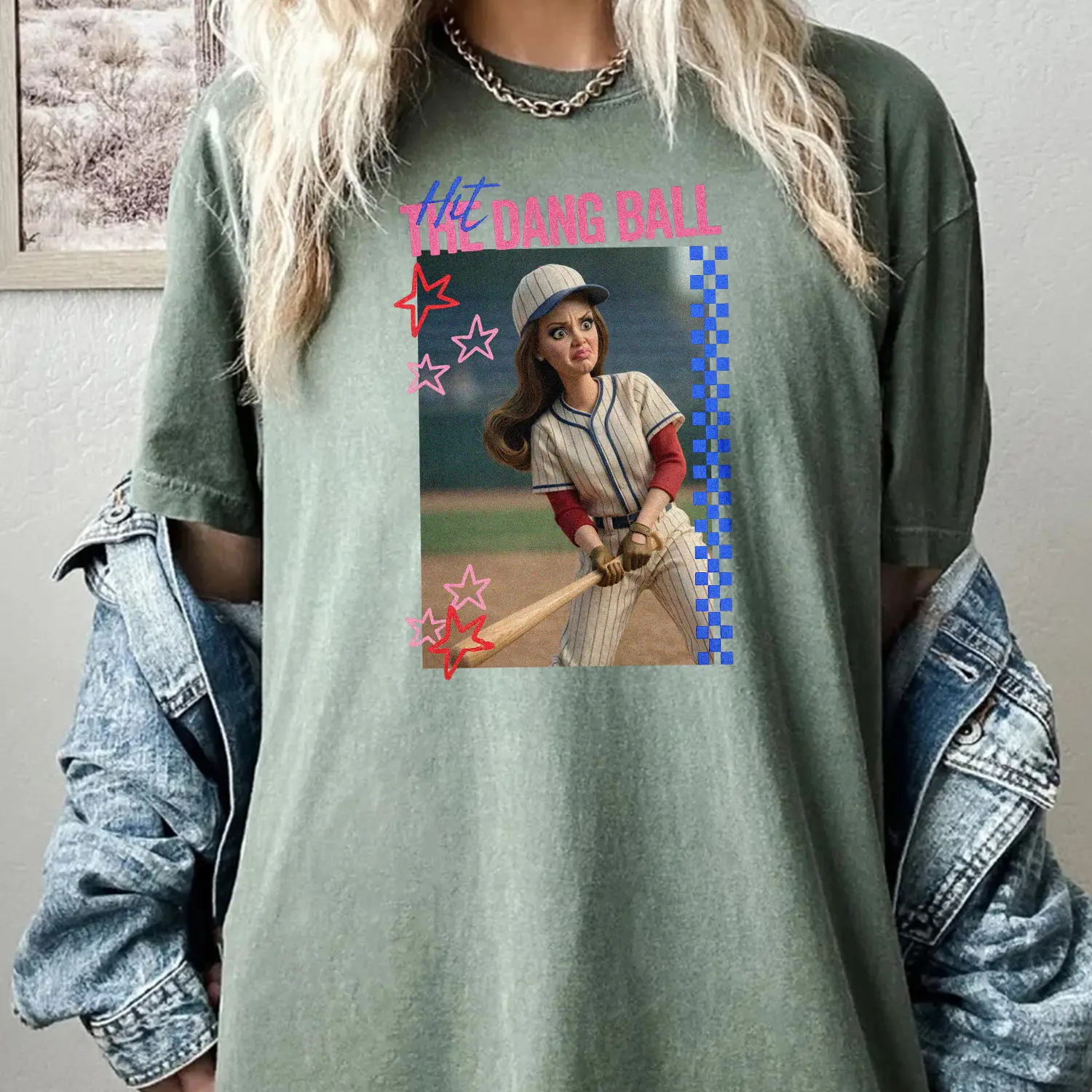 Hit The Dang Ball Funny Baseball Mom Shirt, Game Day Softball Tee, Distressed Doll Face Meme