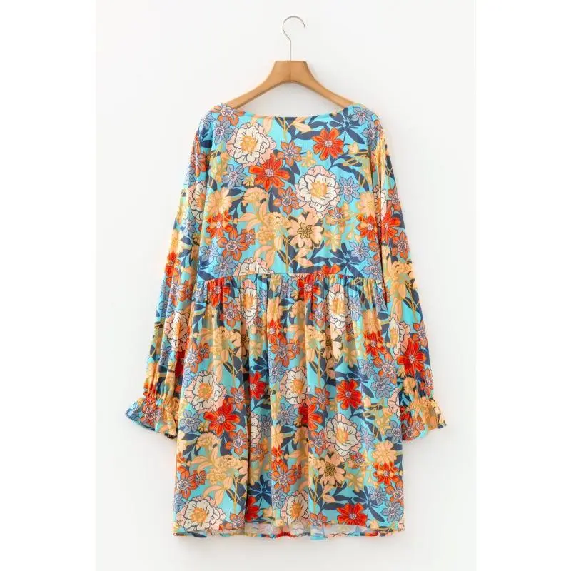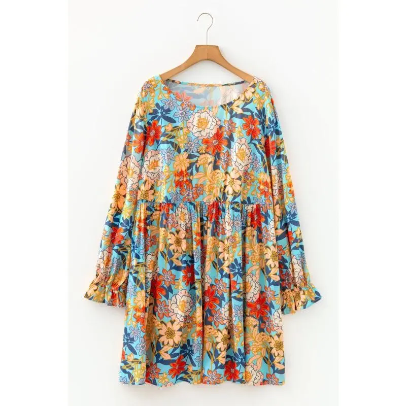 Embrace effortless charm in this delightful dress! Featuring a flattering round neckline and romantic long ruffled sleeves, it's designed to turn heads whether you're running errands or sipping cocktails by the pool. The pleated waistline and flared skirt create a gorgeous silhouette that celebrates your curves, while the mini length keeps things breezy and fun. Versatile enough for everyday wear yet polished enough for resort getaways, this dress is your new go-to for looking fabulous with zero fuss. 100% Viscose
