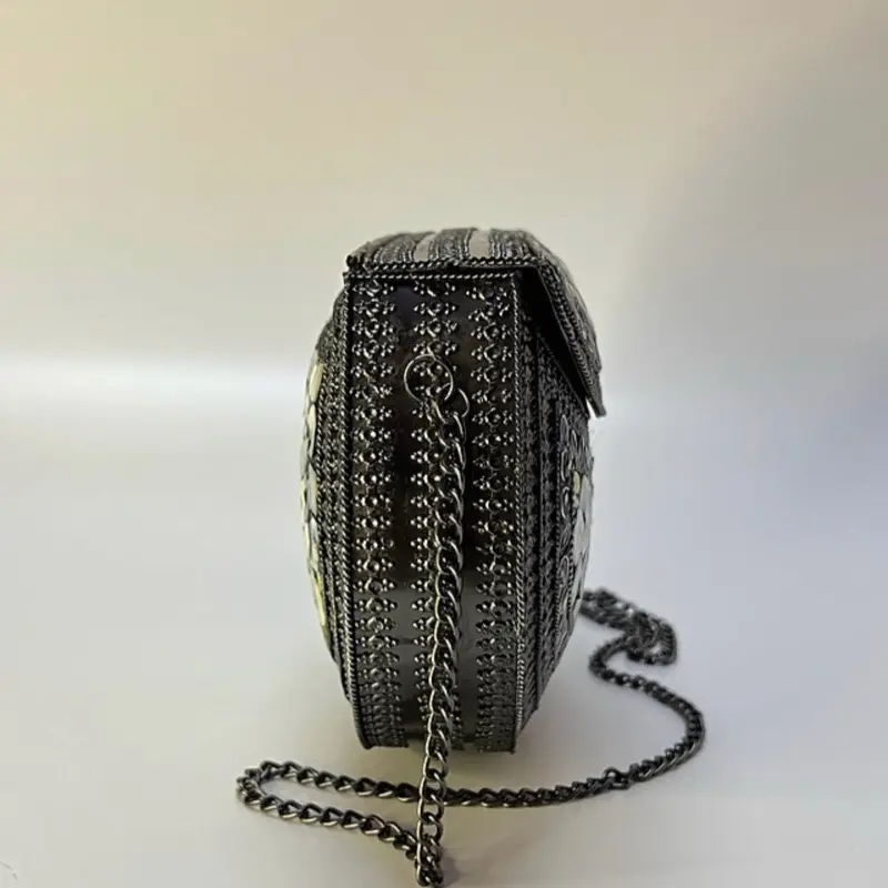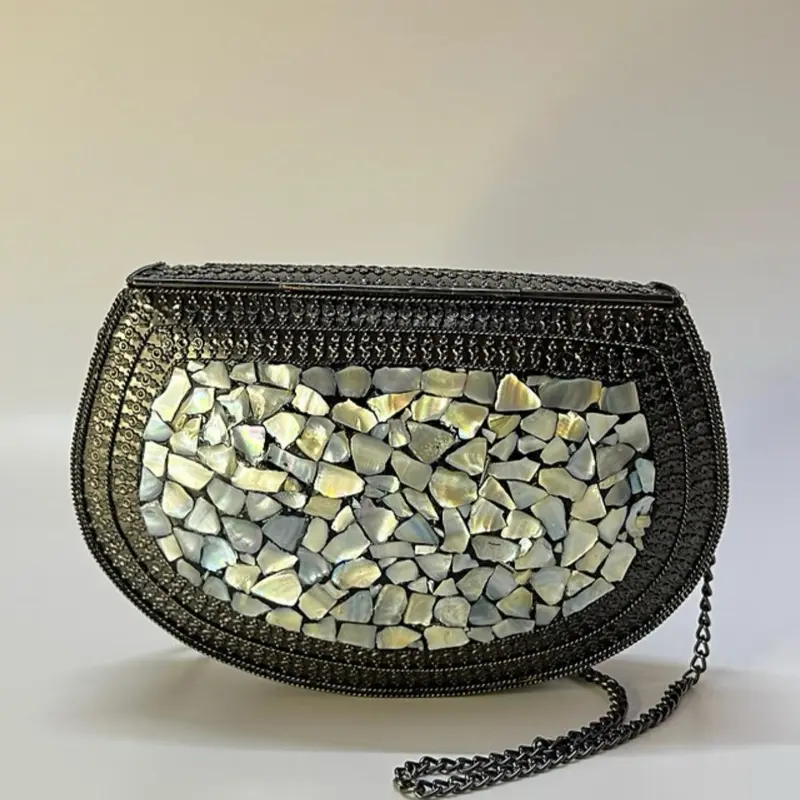 Mettalic clutch with mosaic and mop design