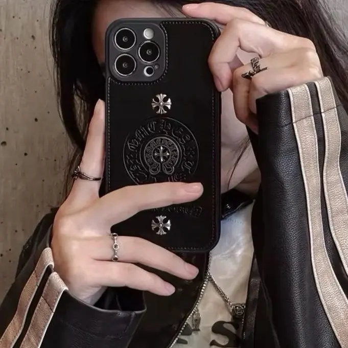 Elevate your iPhone with the Chrome Hearts case. This sleek black case features a striking silver logo, adding a touch of elegance. Perfect for those who appreciate a stylish yet durable design. The case is tailored to fit your iPhone, ensuring both protection and style.
