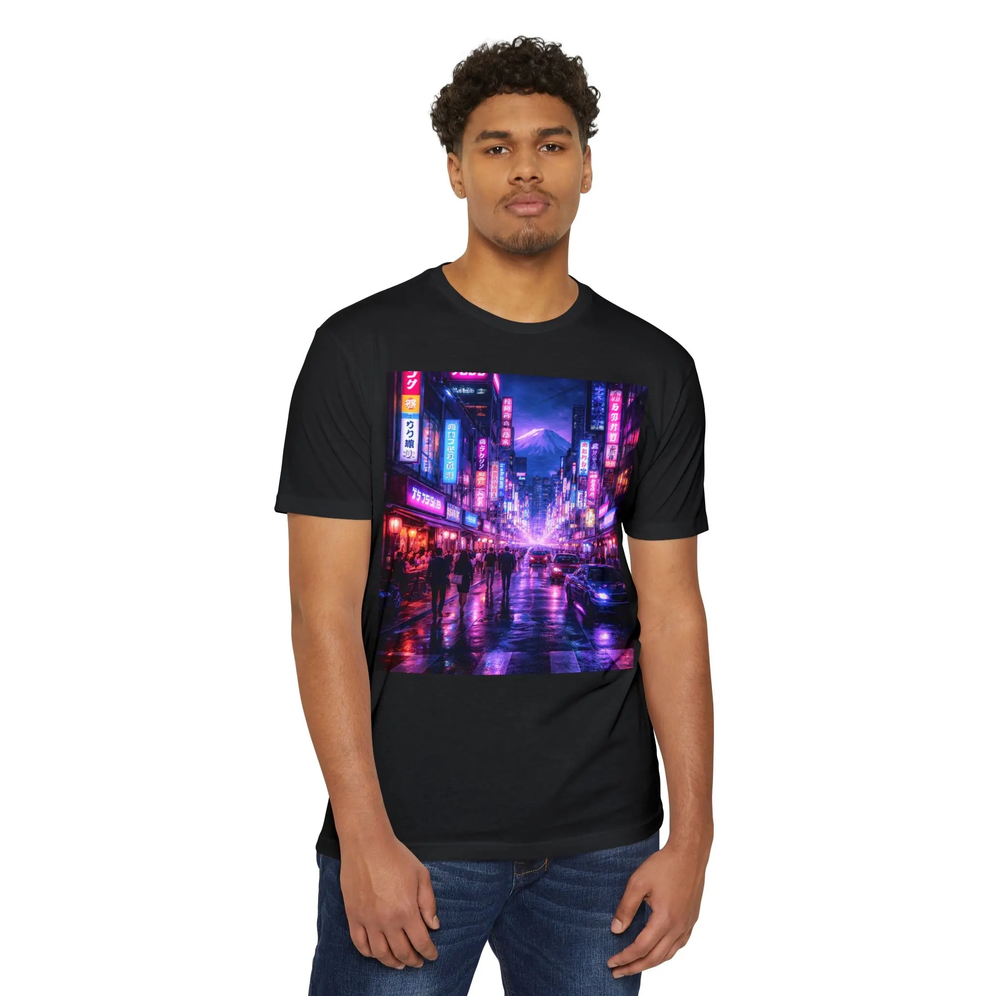 A lightweight, classic-fit tee that brings neon-soaked city nights to your everyday wardrobe. The soft 60/40 combed ring-spun cotton/poly blend feels smooth against skin while holding vivid DTG prints that pop with rich, rainy-street color. Wear it on evenings when you want to channel late-night walks under glowing signage, or layer it for daytime runs through urban markets. The ribbed collar and self-fabric shoulder tape keep the silhouette neat wash after wash, and the tear-away label means zero itch under the neck. Subtle luxury in comfort-forward fabric, built to showcase bold, cinematic artwork on both front and back.