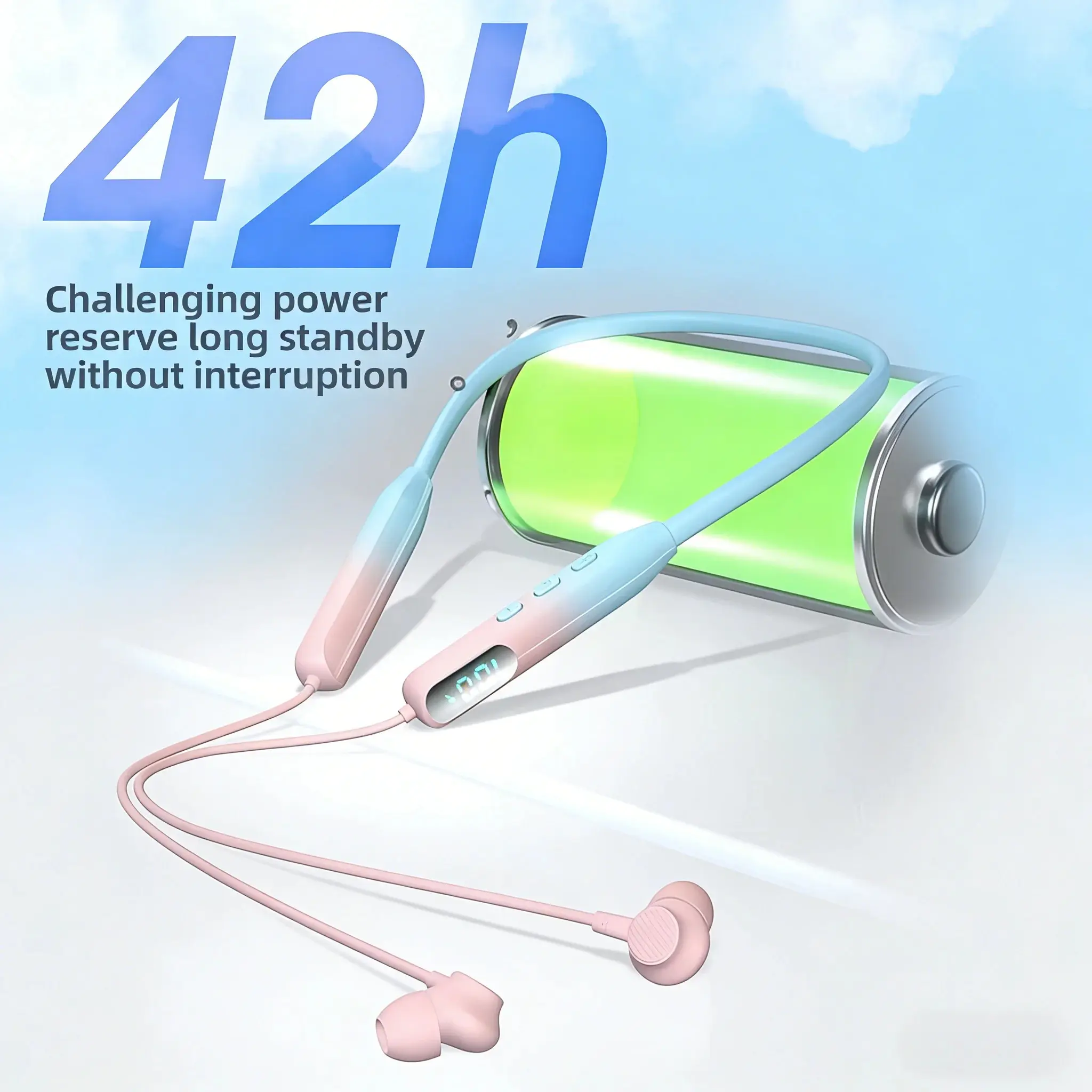 ·The high-definition LED digital screen shows the exact real-time battery level in clear numbers at a glance, no more guessing when to charge, completely eliminating power outage anxiety.With a high-capacity battery, the earbuds support extended continuous music playback and call time on a single charge, easily covering all-day use, weekend trips and back-to-back workouts.