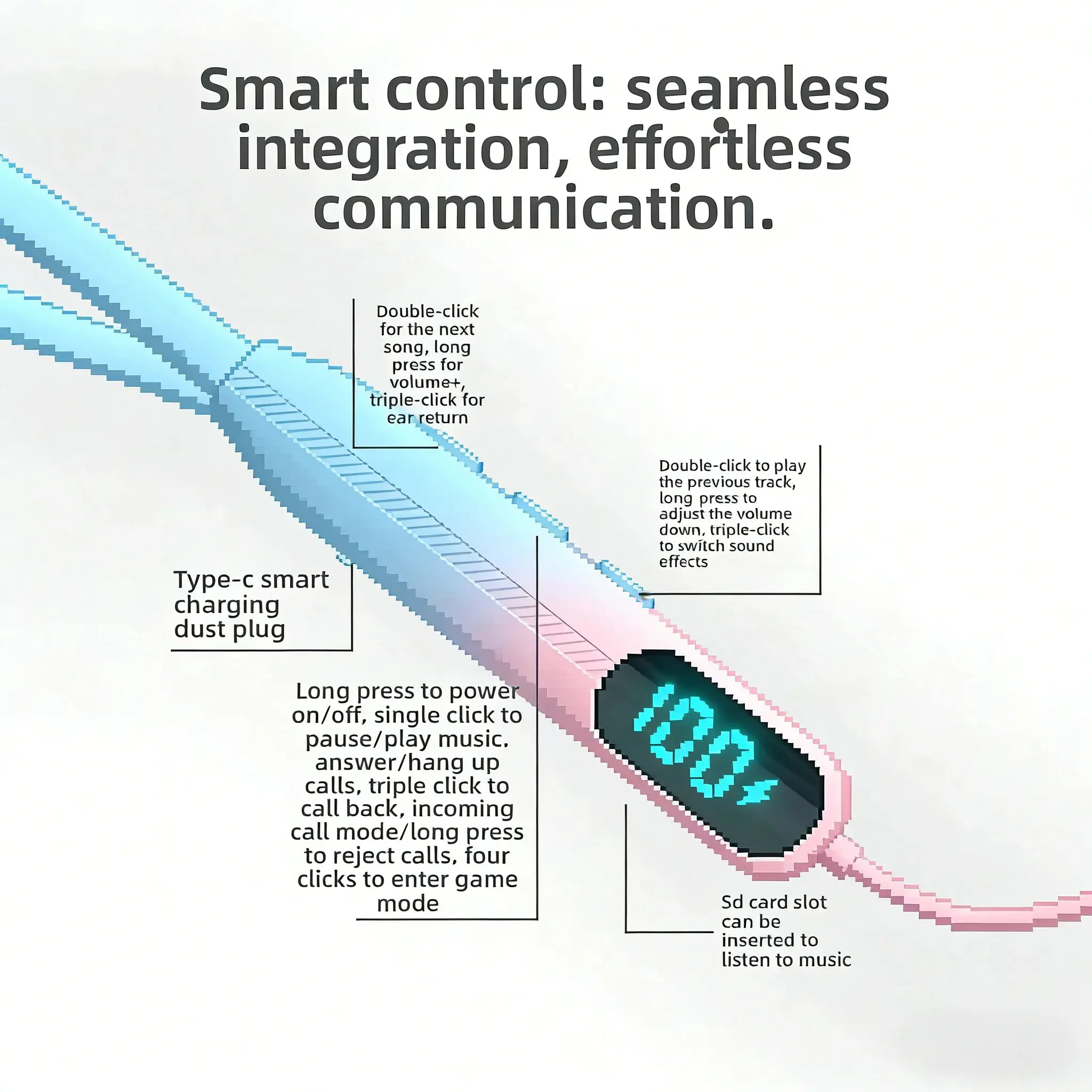 ·The earbuds feature a built-in magnetic design, you can attach them together when not in use to effectively prevent cable tangling, and hang them around your neck like a necklace for easy carrying. The user-friendly physical multi-function buttons support blind operation, letting you control music, volume, calls and voice assistant with one simple press, no need to frequently take out your phone.