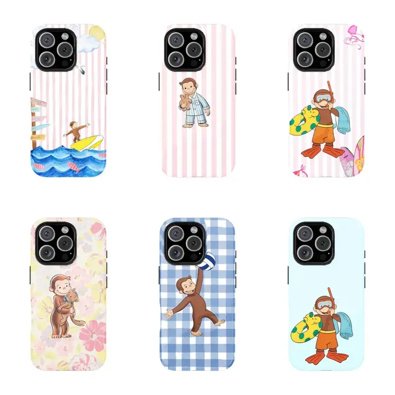 6 style Classic Stripes Colorful Curious George Phone Case - Childhood Favorite Cartoon  Classic Children's Book Phone Cover for iPhone Cute Retro Monkey with Banana