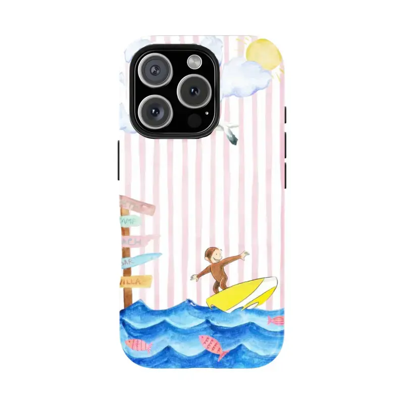 6 style Classic Stripes Colorful Curious George Phone Case - Childhood Favorite Cartoon Classic Children's Book Phone Cover for iPhone Cute Retro Monkey with Banana