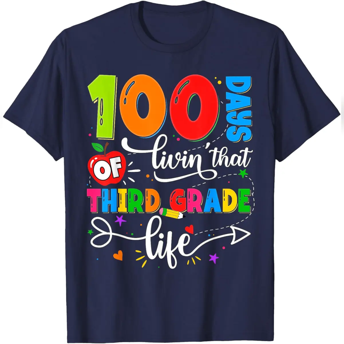 100 Days Of Living That 3rd Grade Life Boy Girl Teacher T-Shirt Comfy Everyday T-Shirt