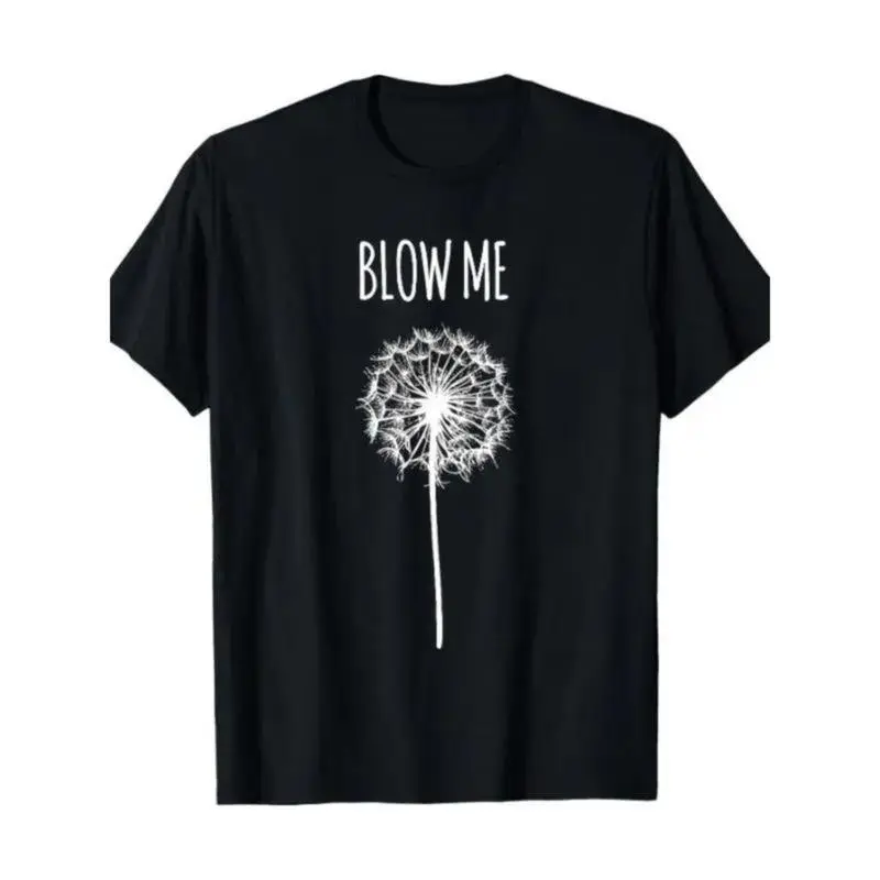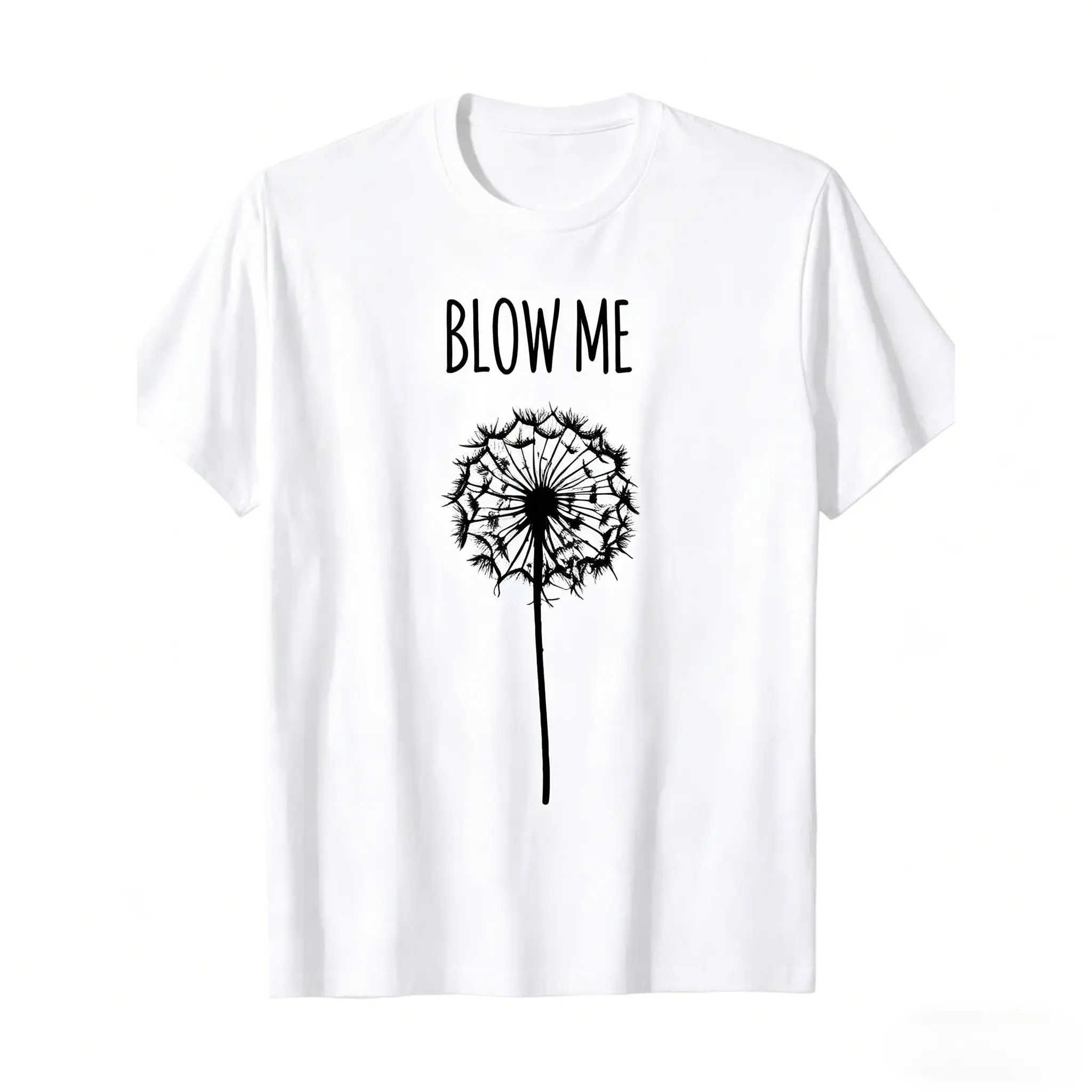 This T-shirt features a playful "Blow Me Dandelion" design, perfect for those who appreciate a good double entendre. The text is bold and eye-catching, making it a fun addition to your wardrobe. Ideal for casual outings, it adds a touch of humor to your everyday look.