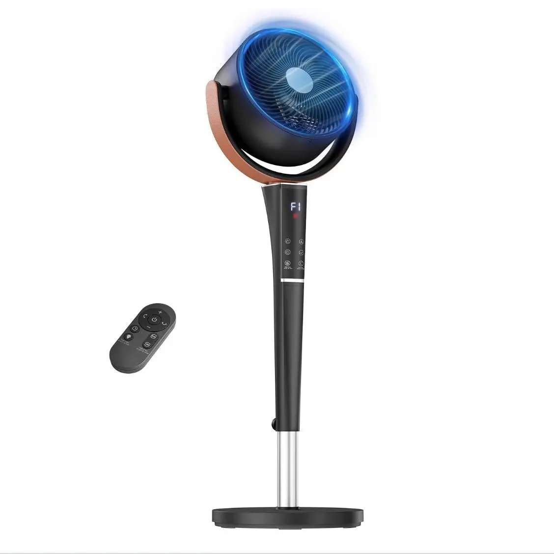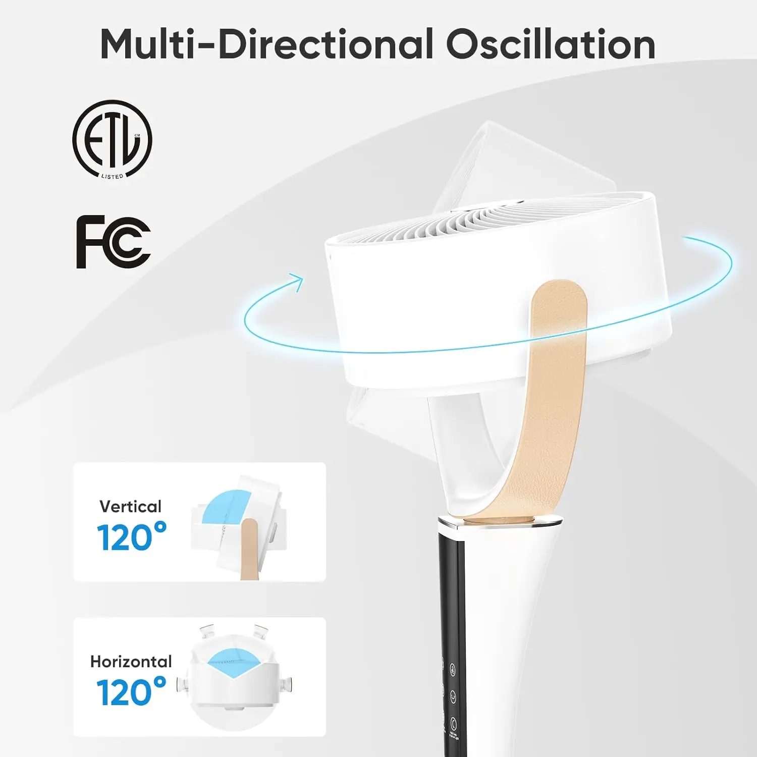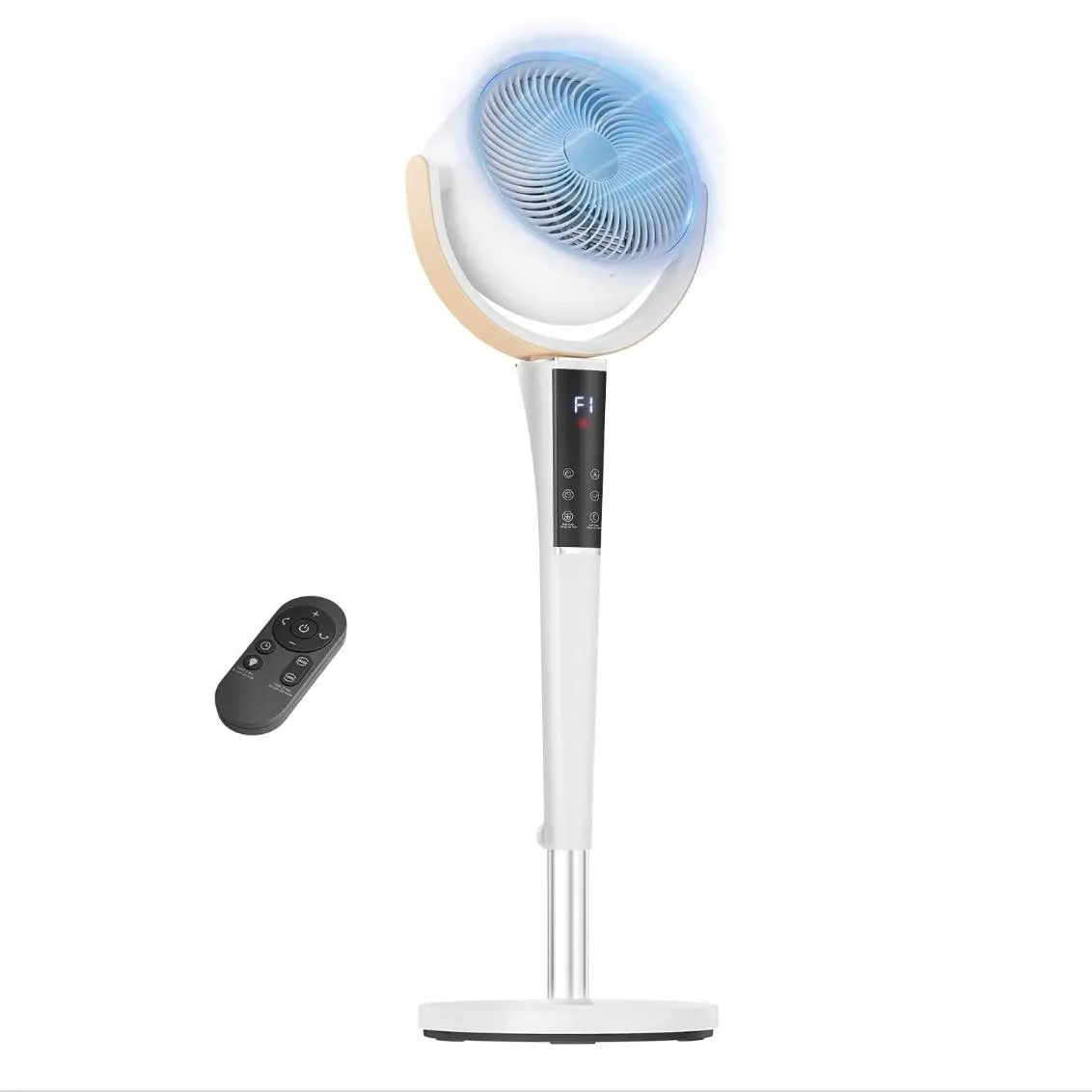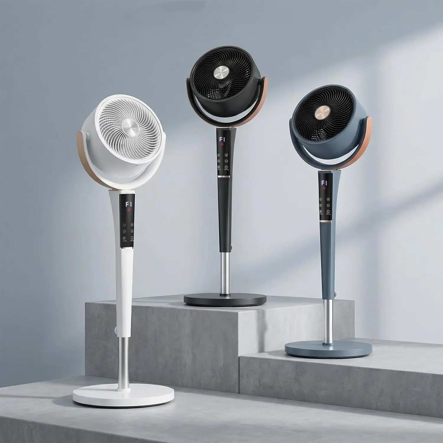 Easily adjust settings using the digital display, touch panel, or remote control. Offers 15 speed levels and 5 wind modes (Normal, Natural, Sleep, Auto, Turbo). Oscillation can be set to 60°, 90°, or 120° for targeted or full-room coverage.