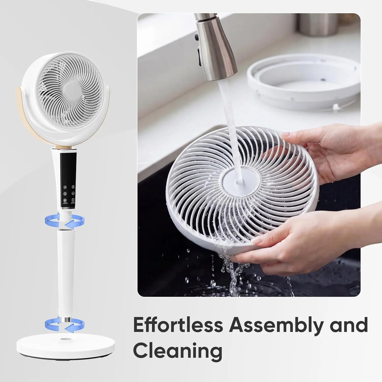 Designed with a detachable blade and washable mesh front cover, making maintenance simple and helping keep the fan fresh with minimal effort.